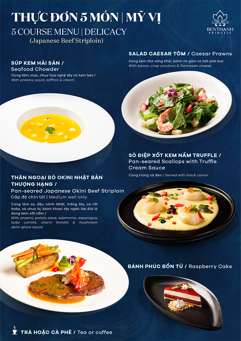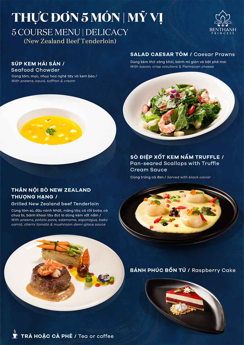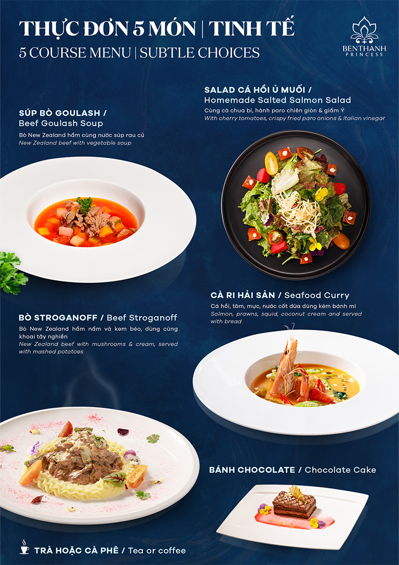Роскошный ужин на круизе Ben Thanh Princess — свежий, спокойный взгляд на яркие огни Сайгона с зелёными и красными маяками, городская панорама Сайгона, сияющая жизненной силой и гламуром, под завораживающие пульсирующие мелодии, создаст незабываемый и уникальный вечерний пир Роскошный ужин на круизе Ben Thanh Princess назван в честь самой знаковой символа богатого культурного наследия Хошимина. Украшенный сочетанием современной тропической архитектуры, «Ben Thanh Princess» стремится стать идеальным выбором для элитных встреч и мероприятий.