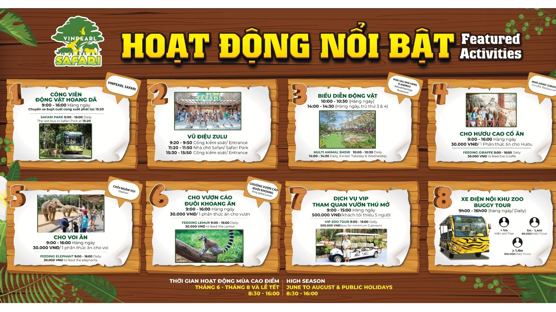- Please refer to the following table for the Featured Activities at Vinpearl Safari