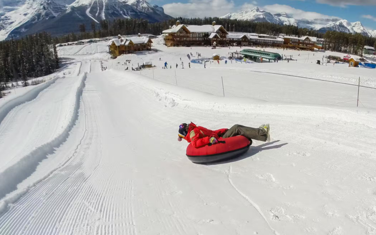 Step away from traditional skiing and embrace the exhilarating fun of Lake Louise's Sunny Tube Park. This unique winter activity invites you to grab a giant doughnut tube and speed down the snowy slopes, offering an exciting alternative to your time at Lake Louise Ski Resort. Whether you're a first-timer or an experienced tuber, the experience is wonderfully simple: just sit back and let gravity guide you on a thrilling ride. It is perfect for families looking to create lasting memories or friends seeking a competitive race. Hold onto each other's tubes as you whirl downhill at top speed, or simply enjoy a slip-sliding blast with your children. If you are seeking a good laugh and pure joy, this park delivers a fantastic, calorie-free adventure for everyone to enjoy