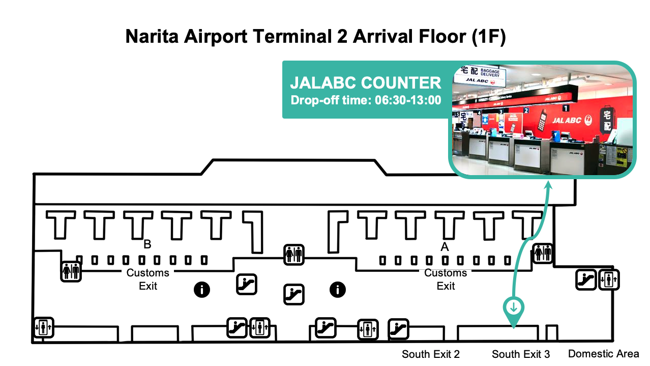 Narita Airport Terminal 2: JALABC Counter Arrival Floor (1F)