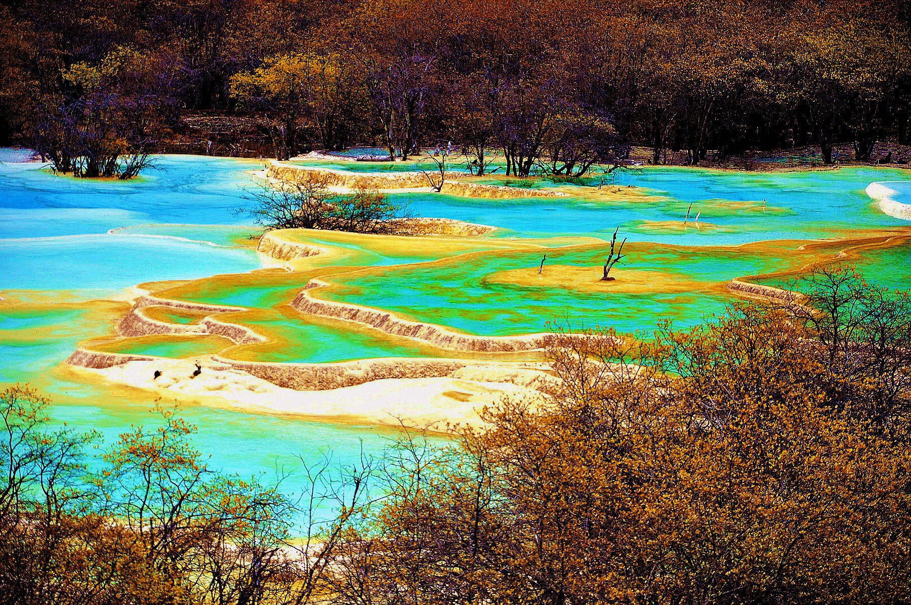 - [Attraction/experience] 10:00, 4 hour(s), Self-guided, Huanglong, Huanglong is a World Natural Heritage site, famous for its rare travertine landforms, enjoying the reputation of "Fairyland on Earth." Within Huanglong Valley, the core scenic area, over 3,400 colorful ponds are layered one upon another. The pond water, due to travertine deposition and light refraction, displays colors such as yellow, green, and blue. This, combined with calcified shoals, waterfalls, and snow-capped mountains, forms a wonderland-like plateau spectacle.