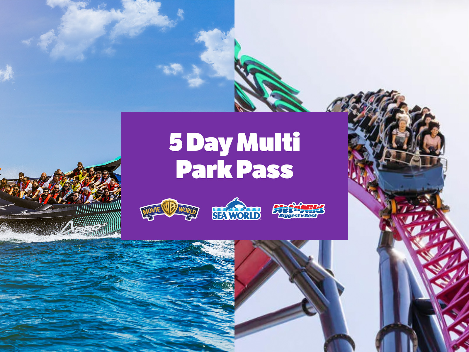 - Unlimited entry to Warner Bros. Movie World, Sea World & Wet’n’Wild over 5 consecutive days