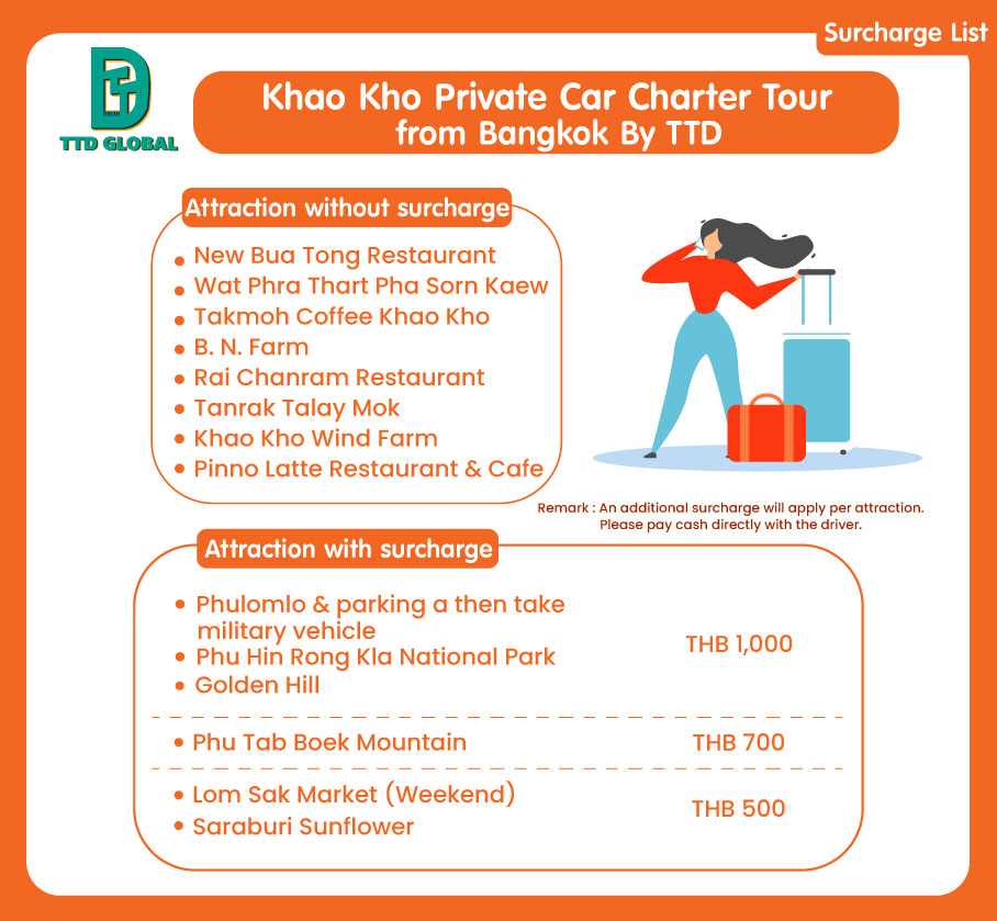 - All surcharges are payable directly in cash (THB) to the driver on-site