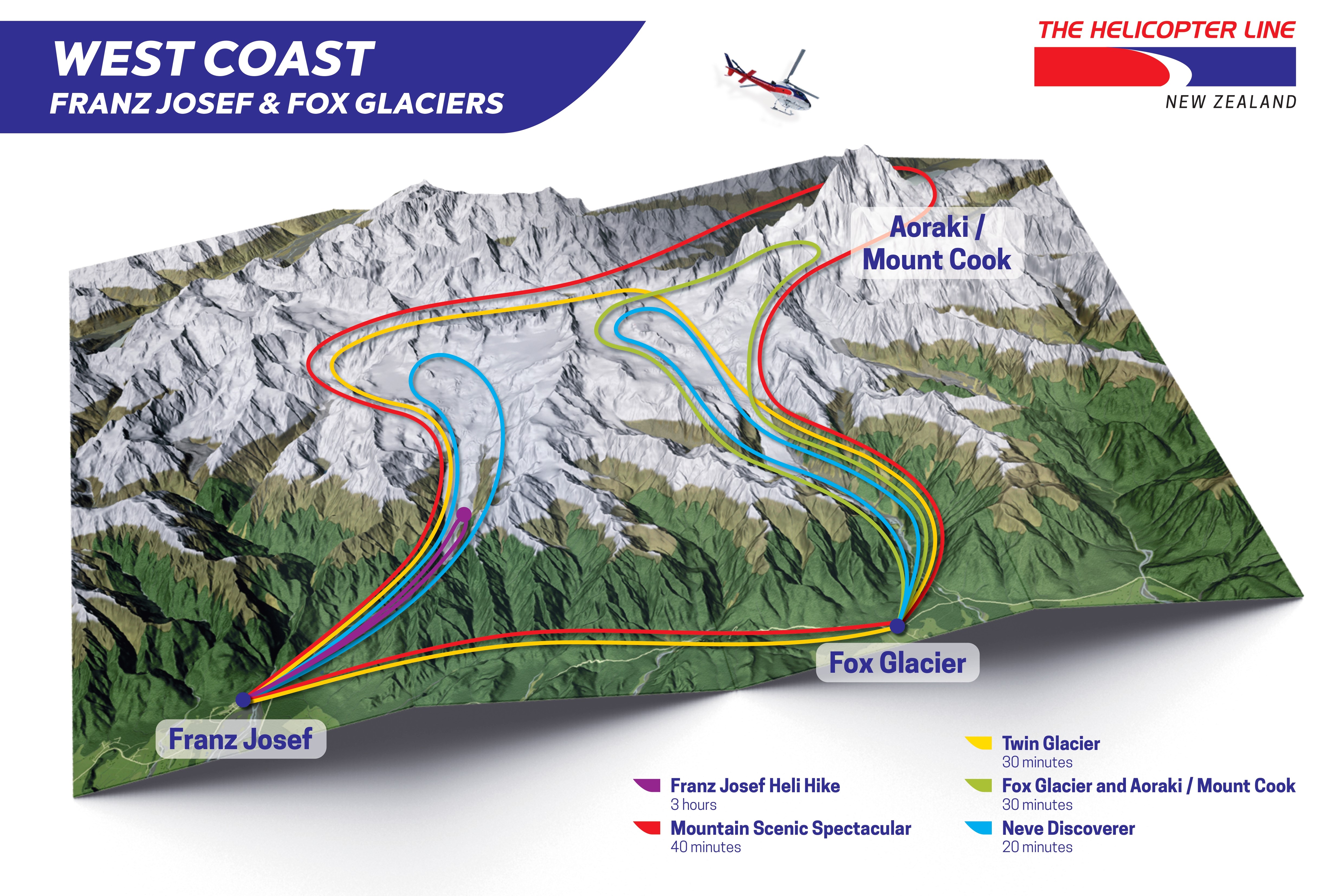 - 25-minute helicopter scenic through the Aoraki Mt Cook National Park