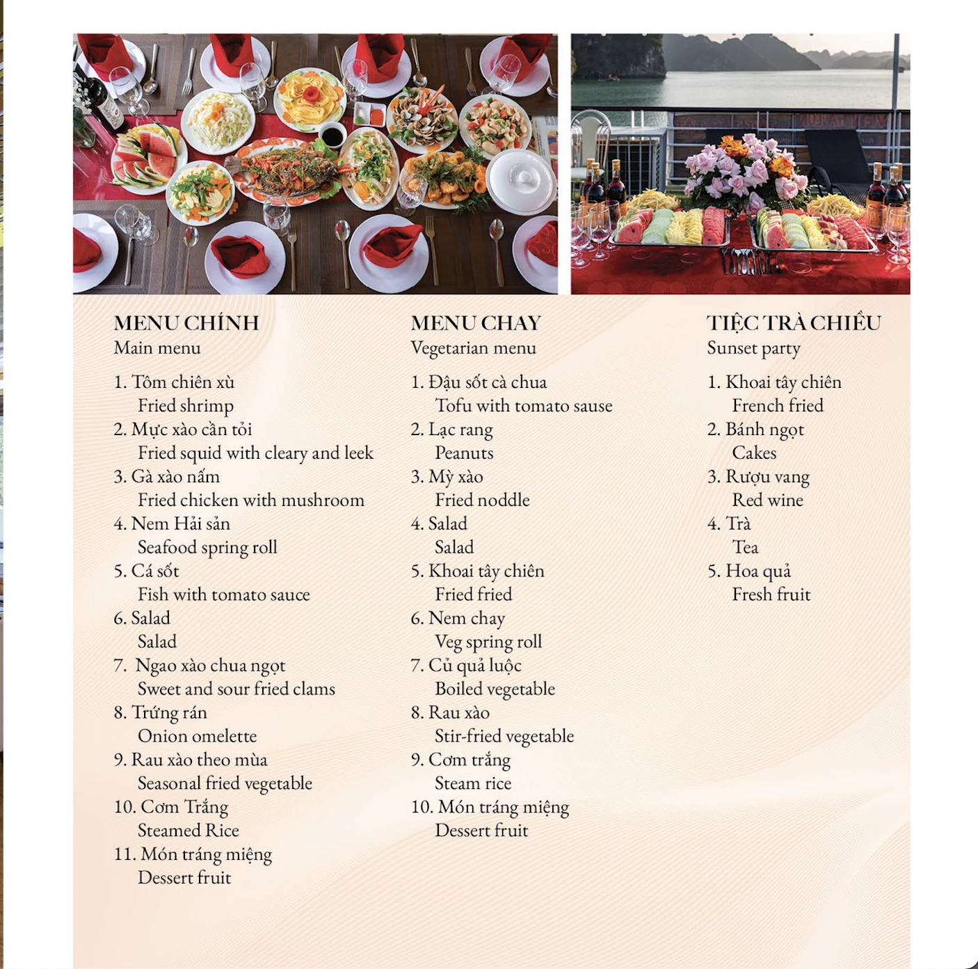 - [Dining] Lunch, Enjoy set menu lunch with Vietnamese traditional food while cruising through thousands of limestone islands