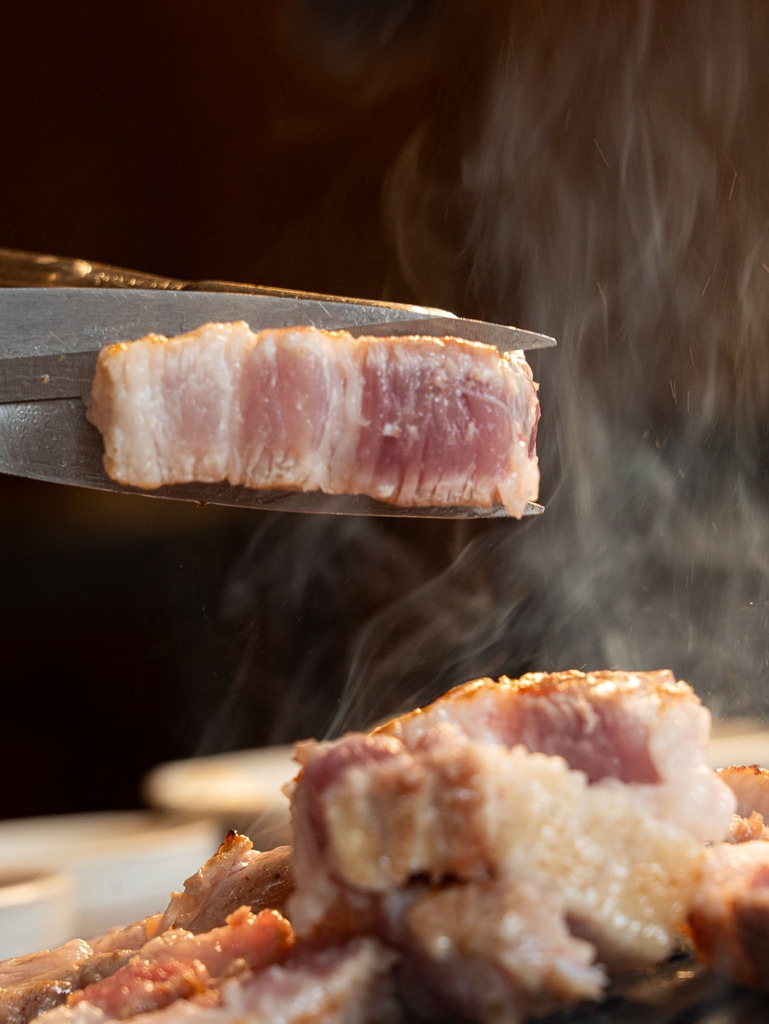 • For 3 people: The basic set includes Aged Bone-in Hanwoo Sirloin (300g), Handon Pork Shoulder (200g), Pork Belly (Samgyeopsal, 200g), a Doenjang Jjigae (Korean Soybean Paste Stew), and side dishes.
