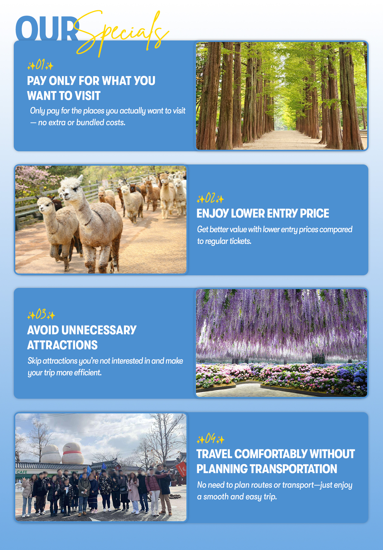 • Admission to Nami island (on-site add-on available)