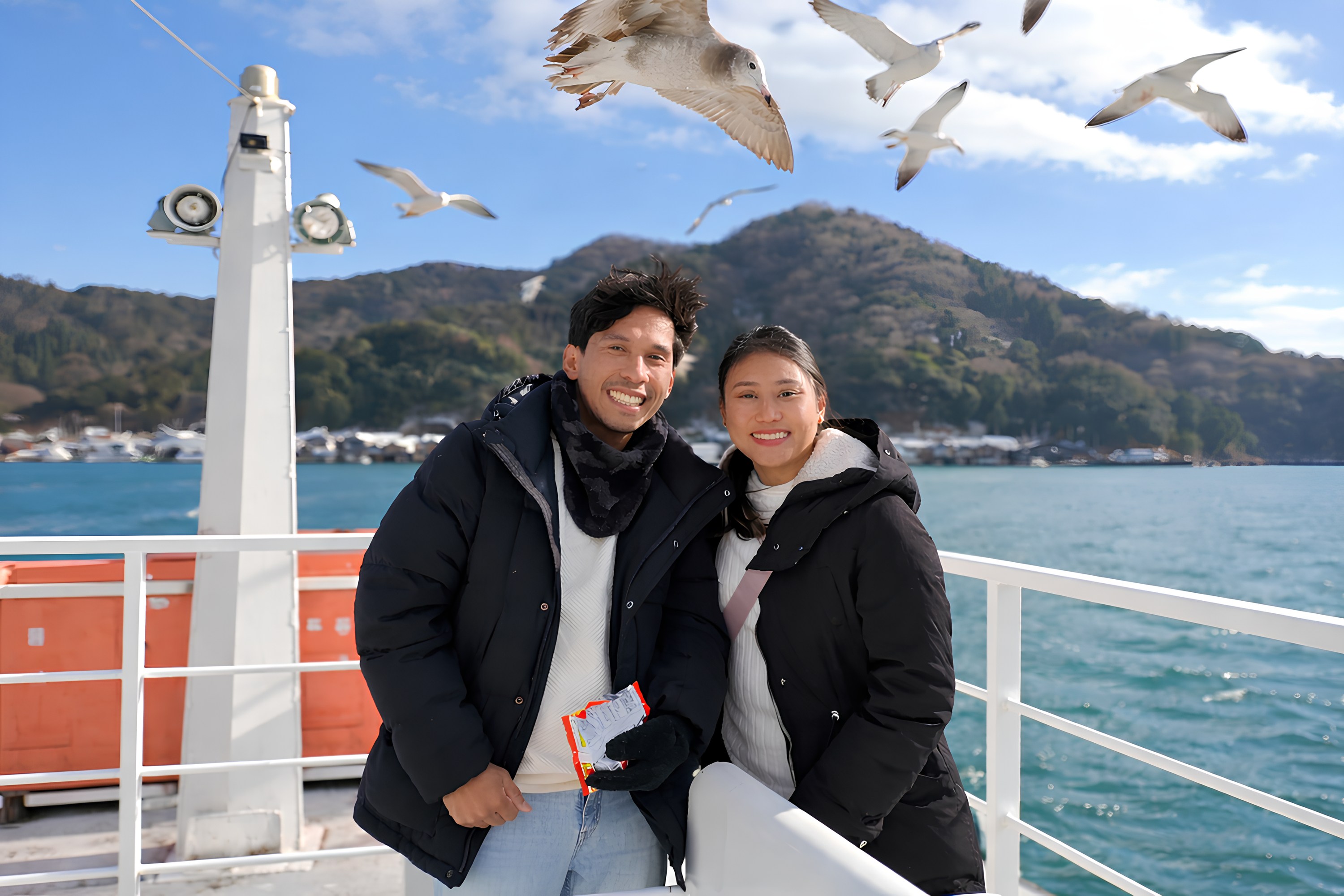 - [Attraction/experience] 13:35, 1 hour(s) 10 min(s), Ine Bay Sightseeing Boat, Ine Fishing Village, There will be approximately 70 minutes of free time to enjoy a boat tour of Ine Bay, admire the Funaya (boathouses), and feed the seagulls. Alternatively, you can stroll through the alleyways, explore unique shops, and experience the peaceful coexistence of people and the sea.