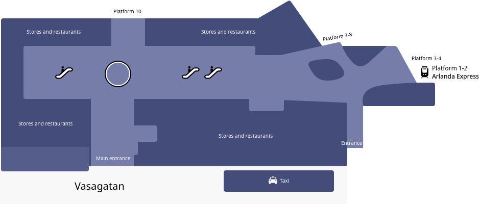 How to get there: You may enter directly to Arlanda Express platforms through the entrances: Kungsbron 1 and The intersection Vasaplan/Östra Järnvägsgatan 15