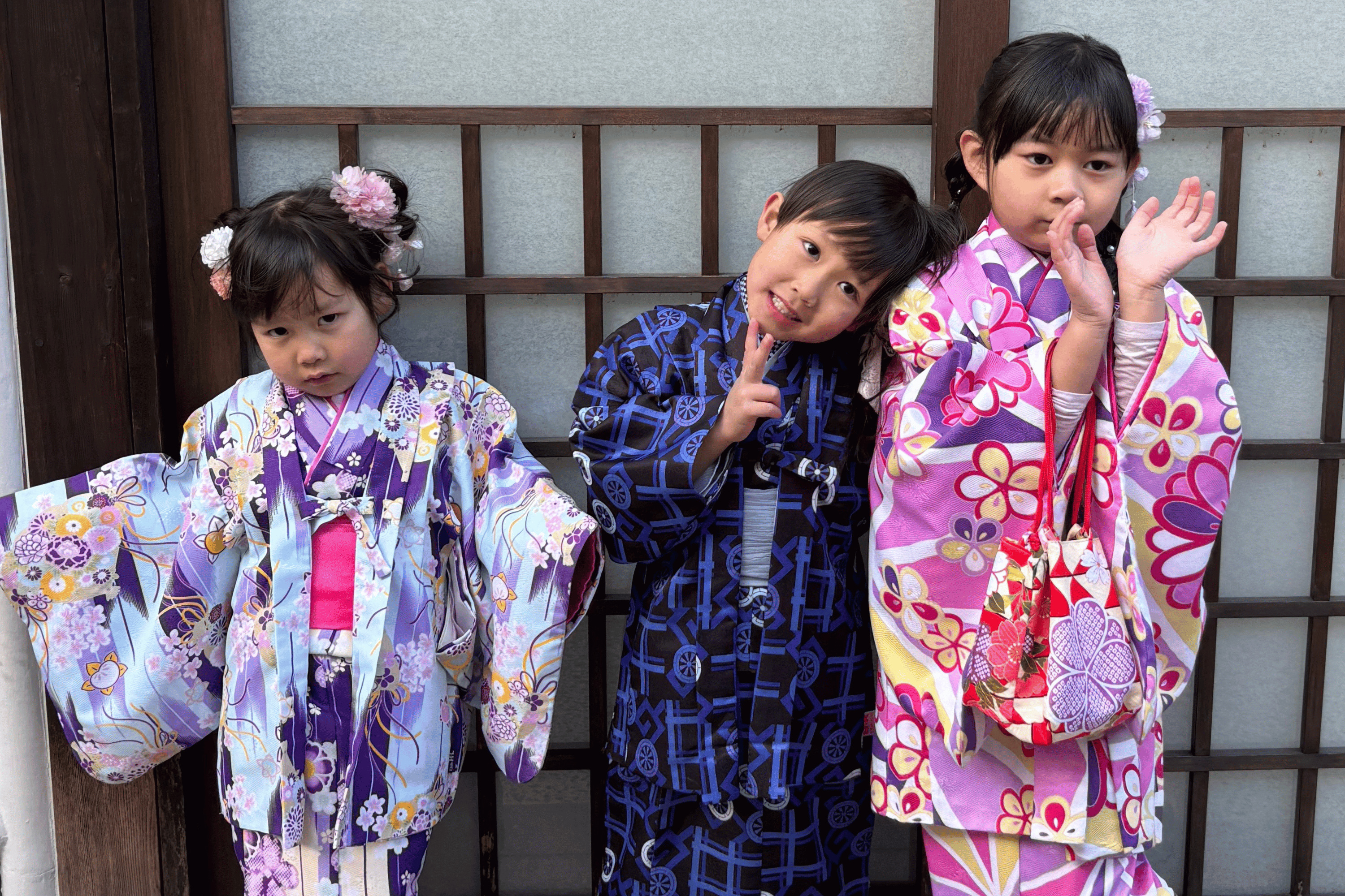 - Girl's: Kimono, heko obi, juban (undergarment), haori (outerwear), Japanese-style handbag, Japanese-style socks, zori