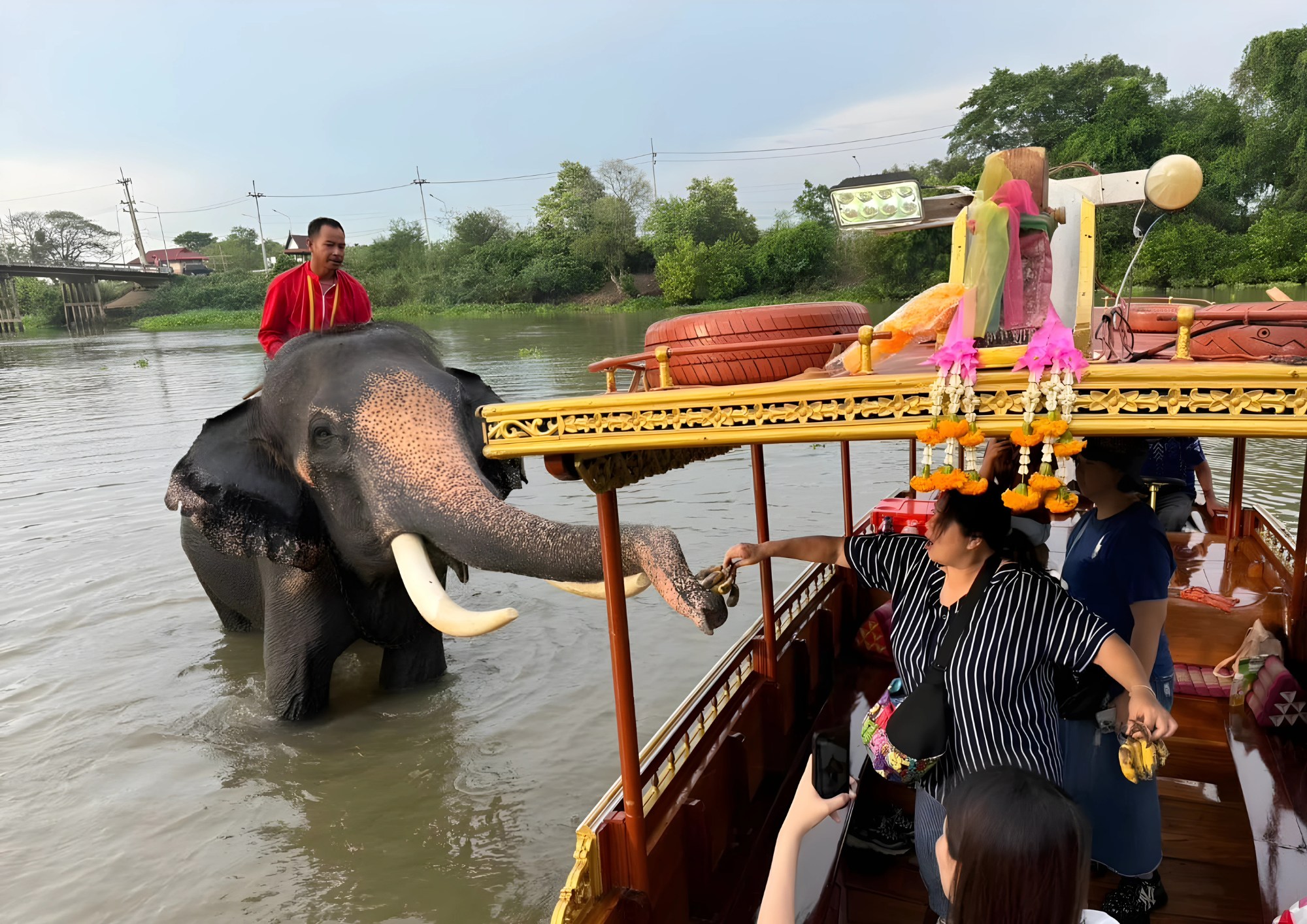 - Sunset boat ride with feeding elephant