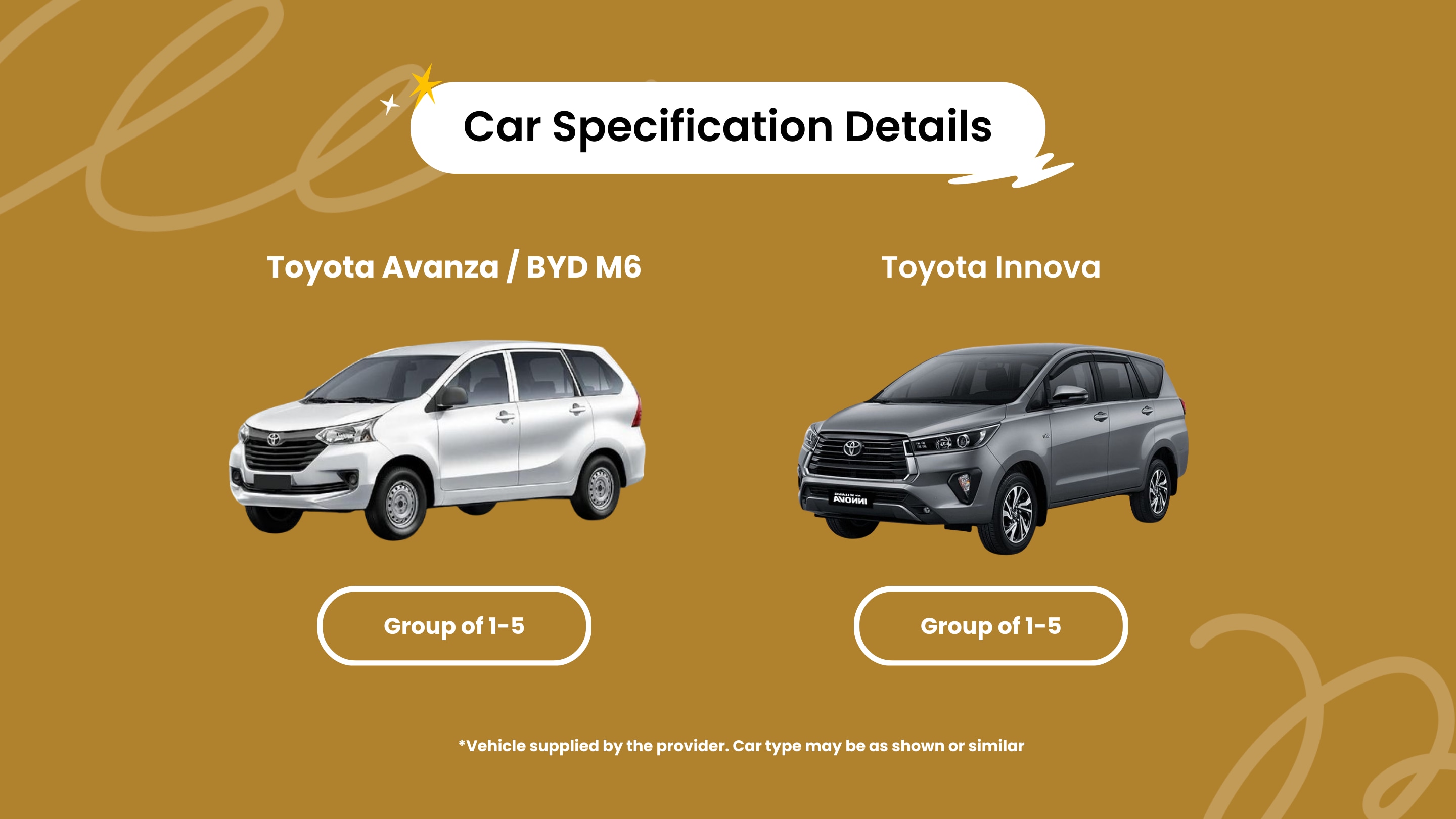 Car Brand: Toyota Avanza, BYD M6 or similar
