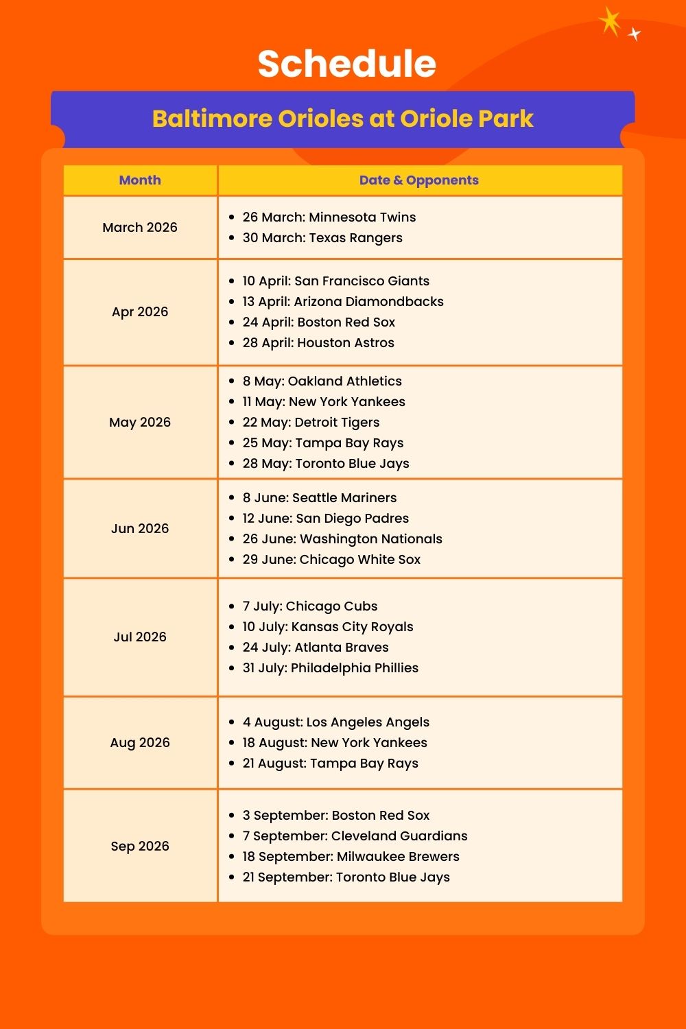 • Admission to: Baltimore Orioles Baseball Game at Oriole Park
