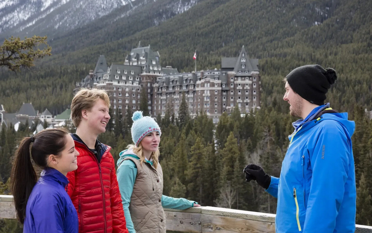 • Стандартная точка сбора: общественная парковка автобусов (позади отеля Mount Royal в Банфе)