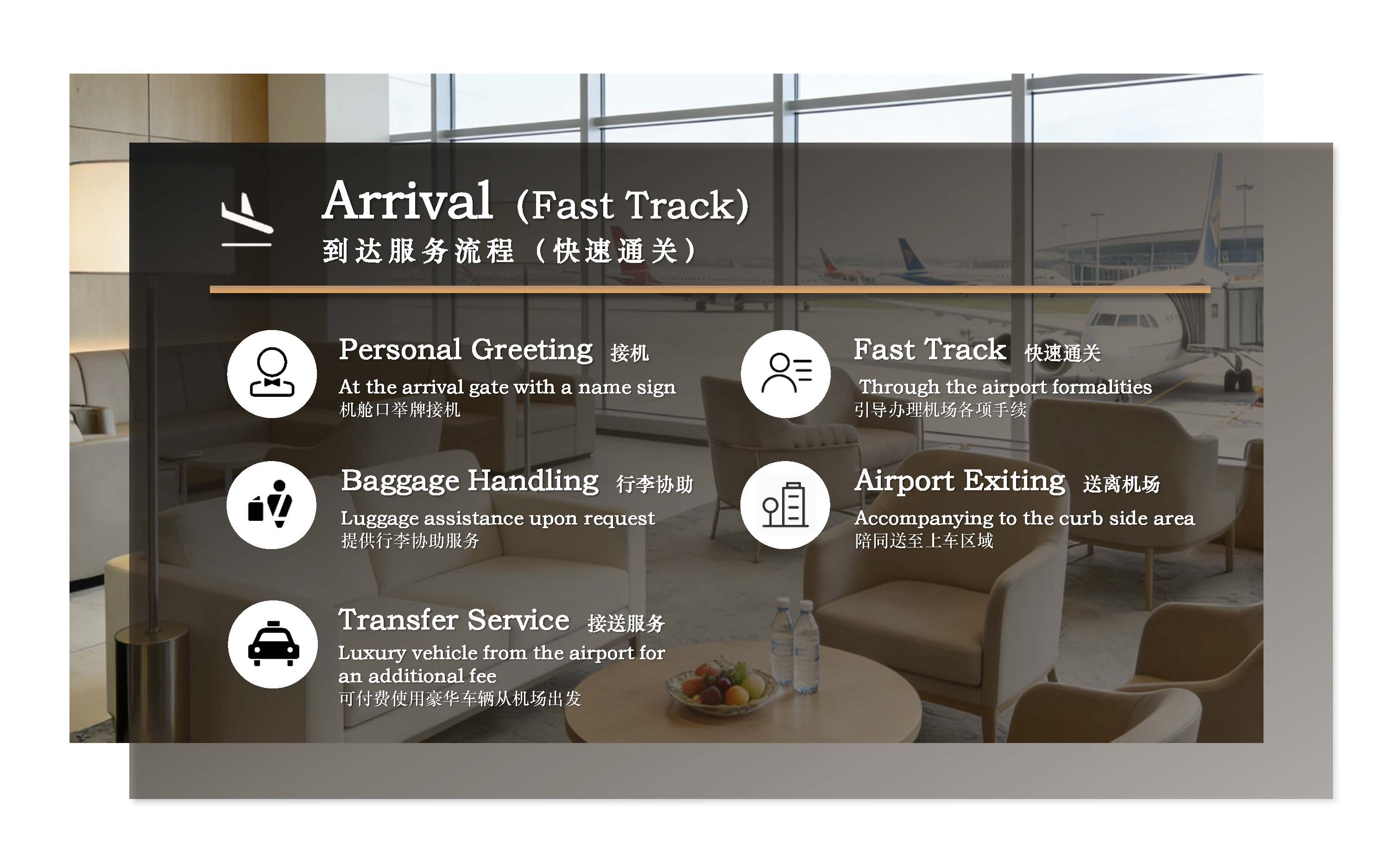 - The domestic VIP airport drop-off service time is 2 hours. If the service exceeds the time limit due to reasons other than flight delays, additional charges will be incurred.