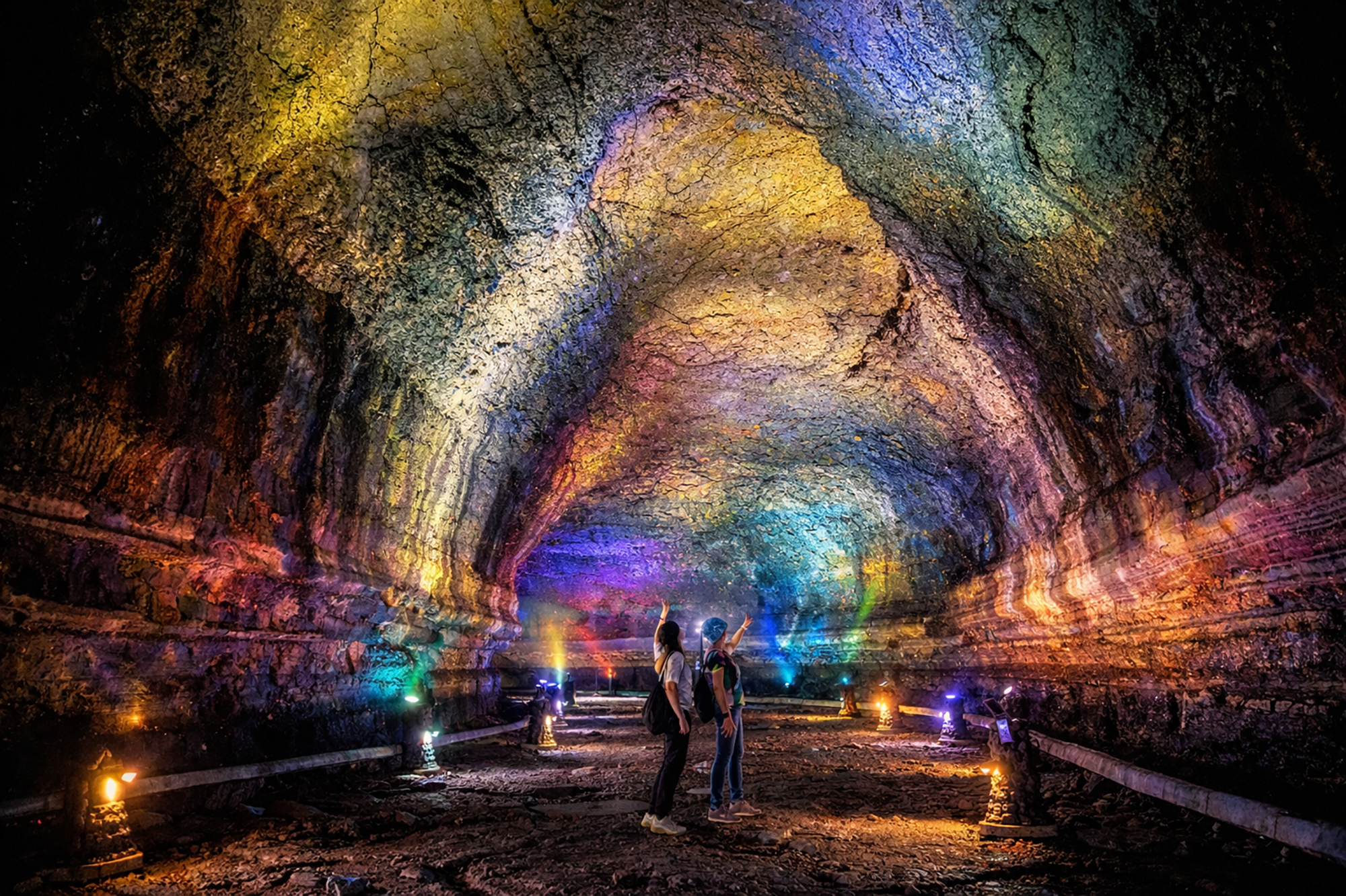 - [Attraction/experience] 10:10, 50 min(s), Guided tour, Sunrise Land, Manjanggul Lava Tube, [Micheon Cave] Ilchul Land is a botanical park featuring Micheon Cave, a lava tube with colorful lighting. If Manjanggul Cave reopens, this stop will be replaced with a visit to Manjanggul.