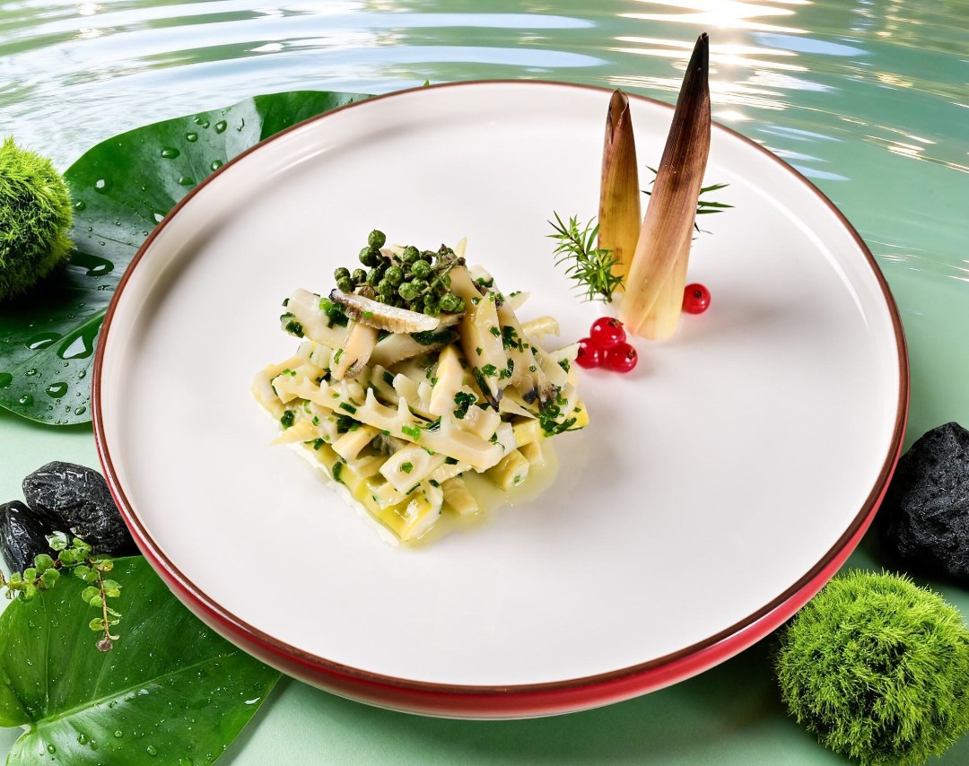 - Smashed Cucumber, Sichuan Pepper Abalone with Spring Bamboo Shoots, Daily Health Soup (4 servings), Shrimp Soup with Stuffed Spring Bamboo Shoots, Chinese Toon and Black Garlic Fish Maw, Seafood Hand-Shredded Braised Yangshan Black Tofu, Stir-fried Chinese Kale with Garlic, Golden Pillar Egg White Fried Rice, Golden Fruit Pudding (4 servings)