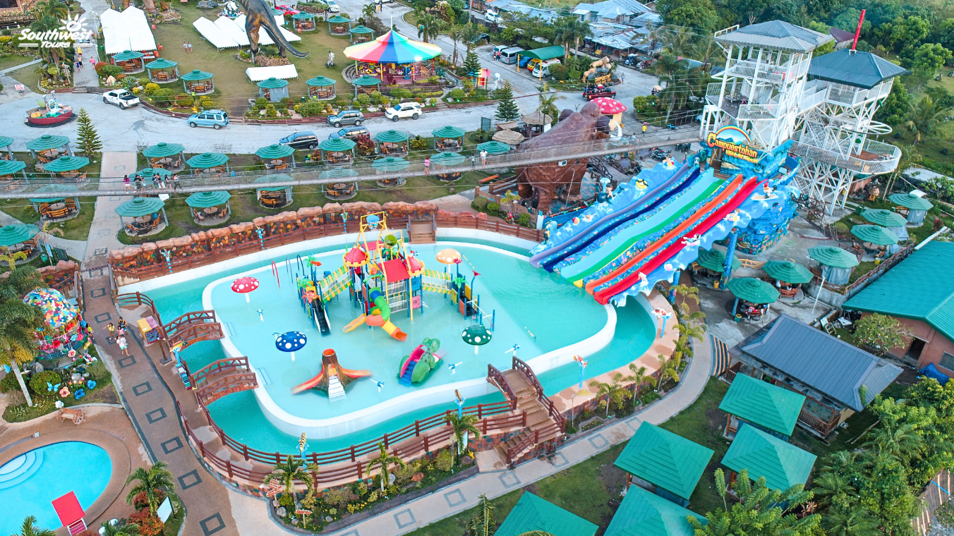 - Facilities: Swimming pools, restaurant pavilion, children's playground, hanging bridge, Dino Park, King Kong, coffee shop, ice cream parlor, spa, photo services