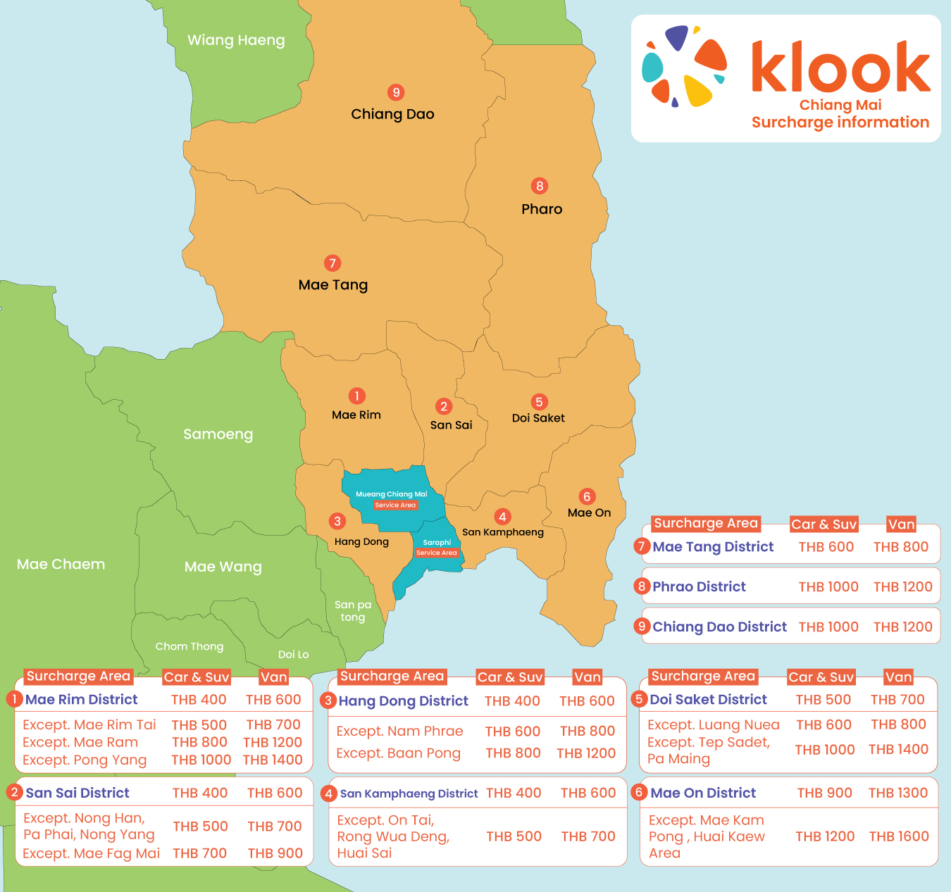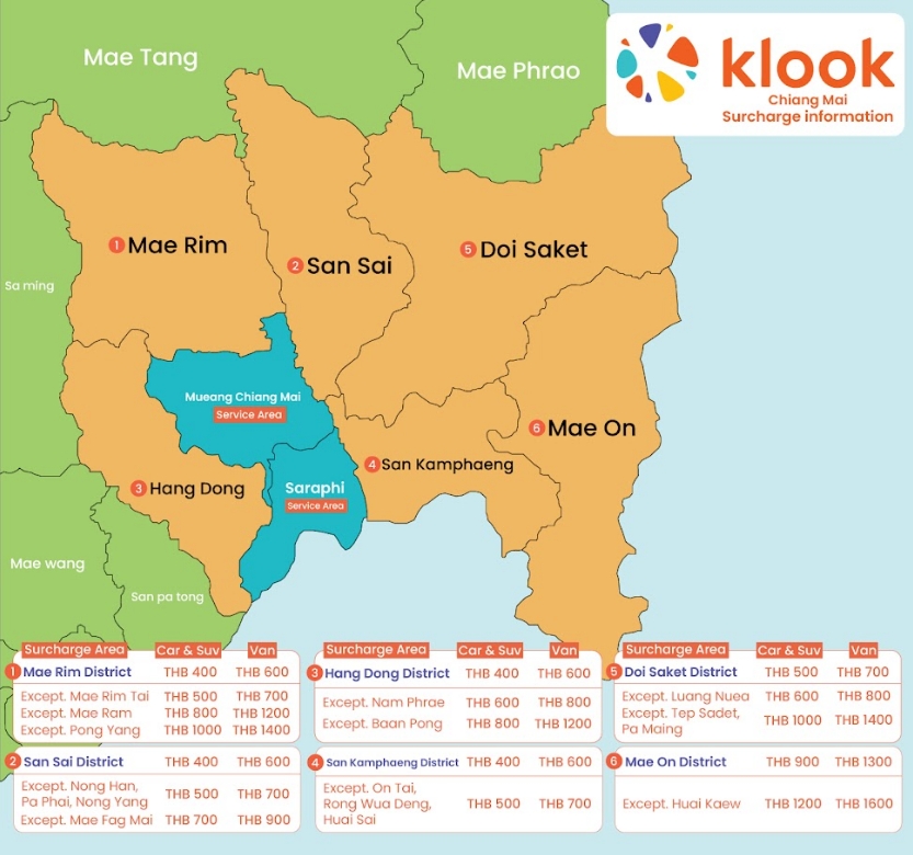 Please check surcharge area here: Chaing Mai Surcharge Area & Chiang Rai Surcharge Area
