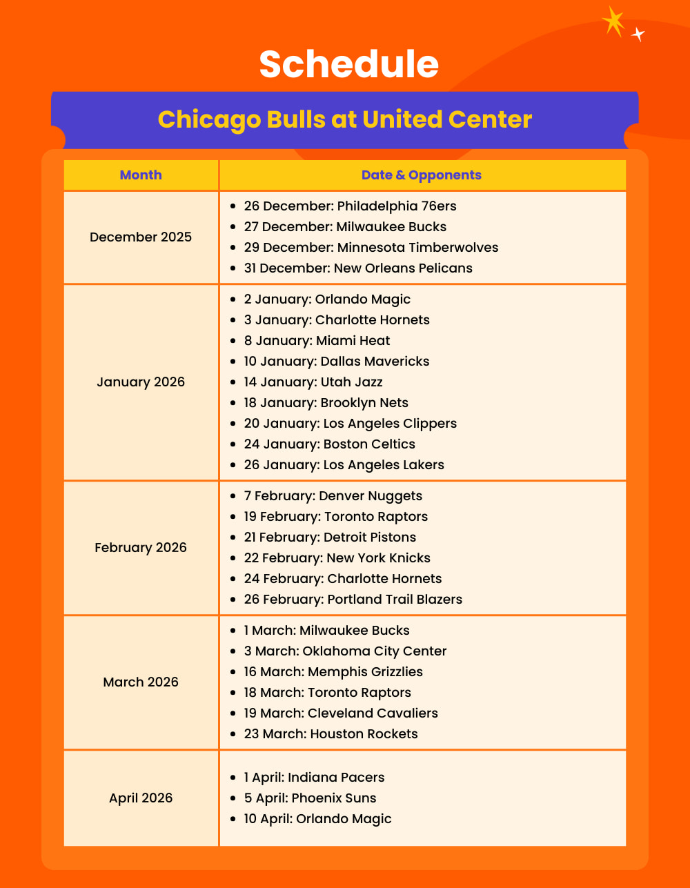 - Admission to: Chicago Bulls Basketball Game at United Center