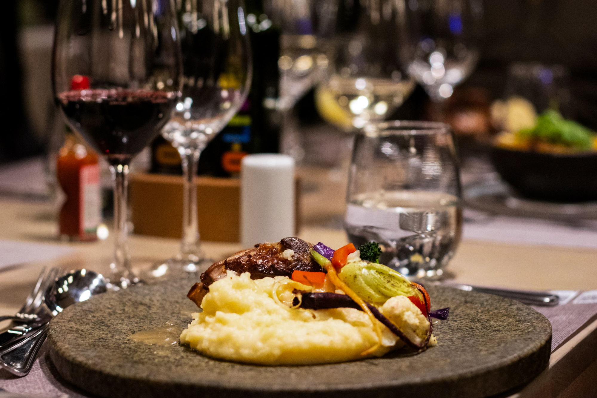 - Three-course dinner accompanied by two glasses of wine