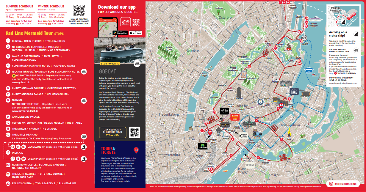 Cruise Ship Passengers: Buses meet all arriving ships from 8:00 AM at both Langelinie and Ocean Pier terminals. For guests docked at Ocean Pier, a dedicated return shuttle operates from 11:00, departing from the Little Mermaid (Stop 12)