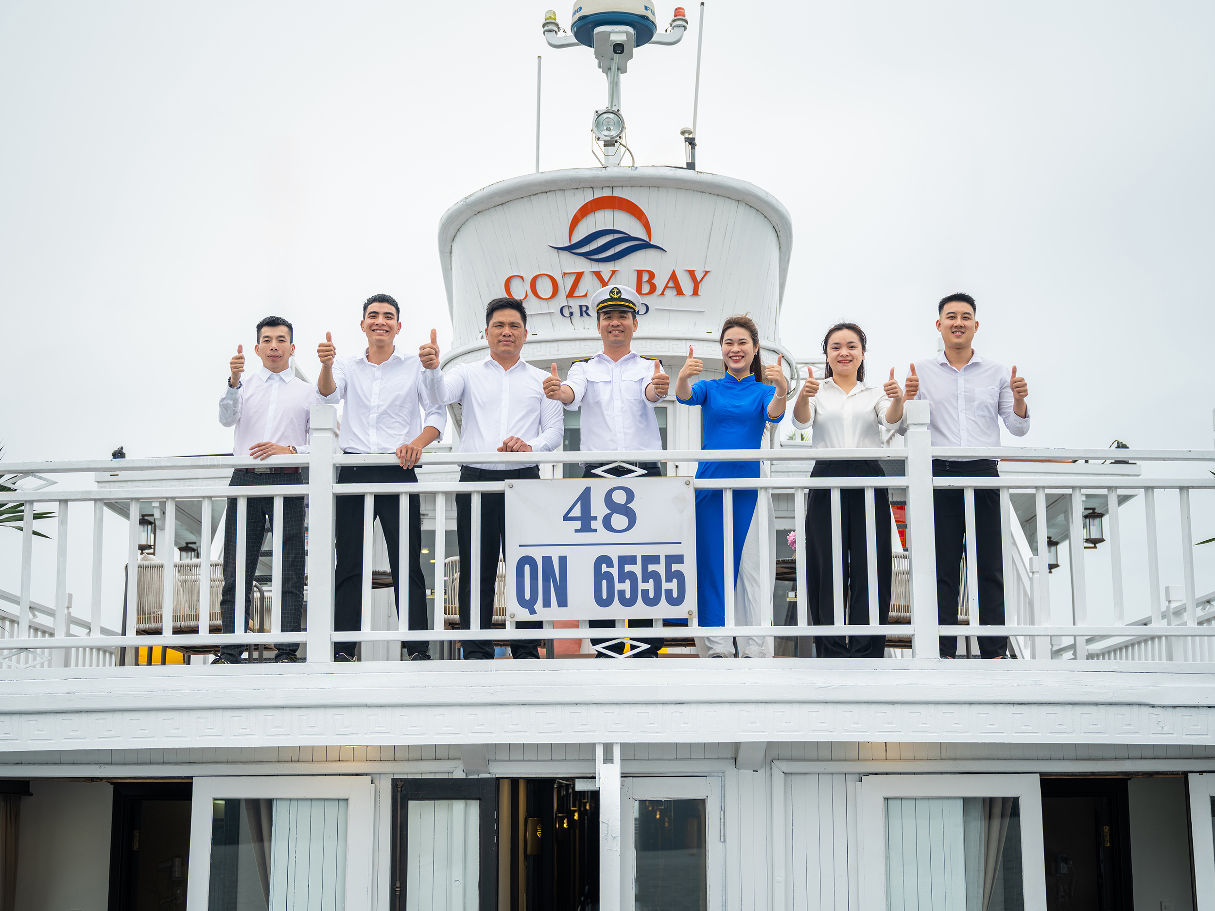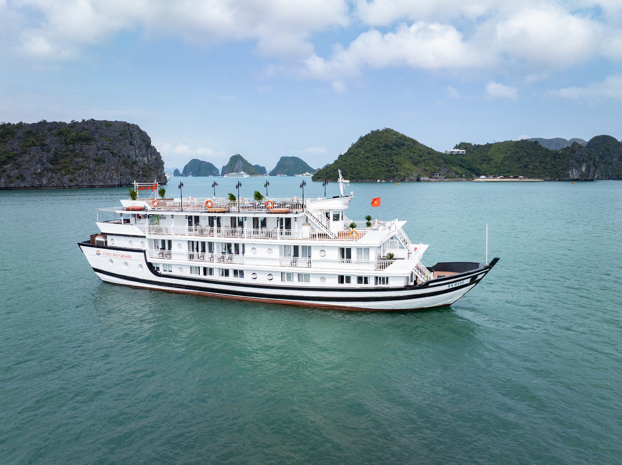 - [Return] 11:45, at Cozy Vietnam Travel - Halong Cruises, Disembark at Tuan Chau Harbor. Farewell crew members. Thank you for using the service of Cozy Bay Grand.
