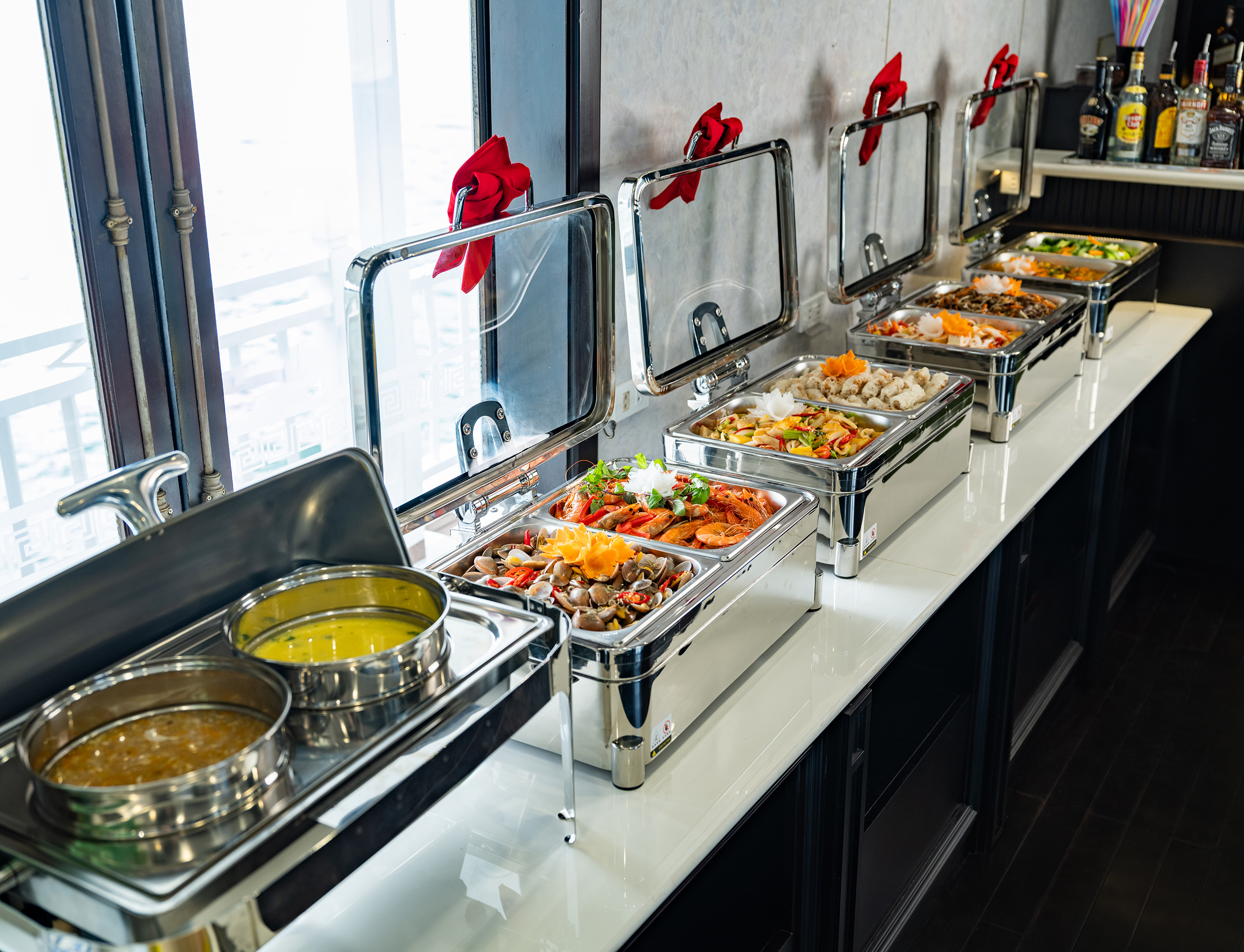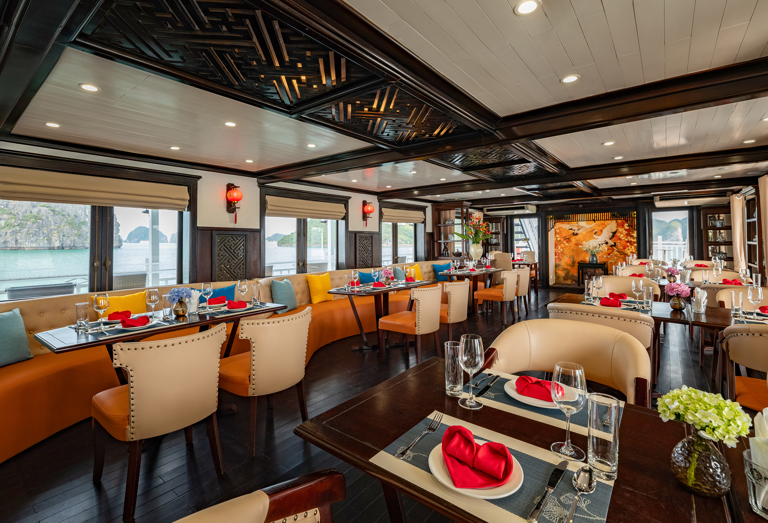 - [Dining] 13:00, Lunch, Delight in a Buffet lunch while cruising through the stunning limestone landscapes of Ha Long Bay.