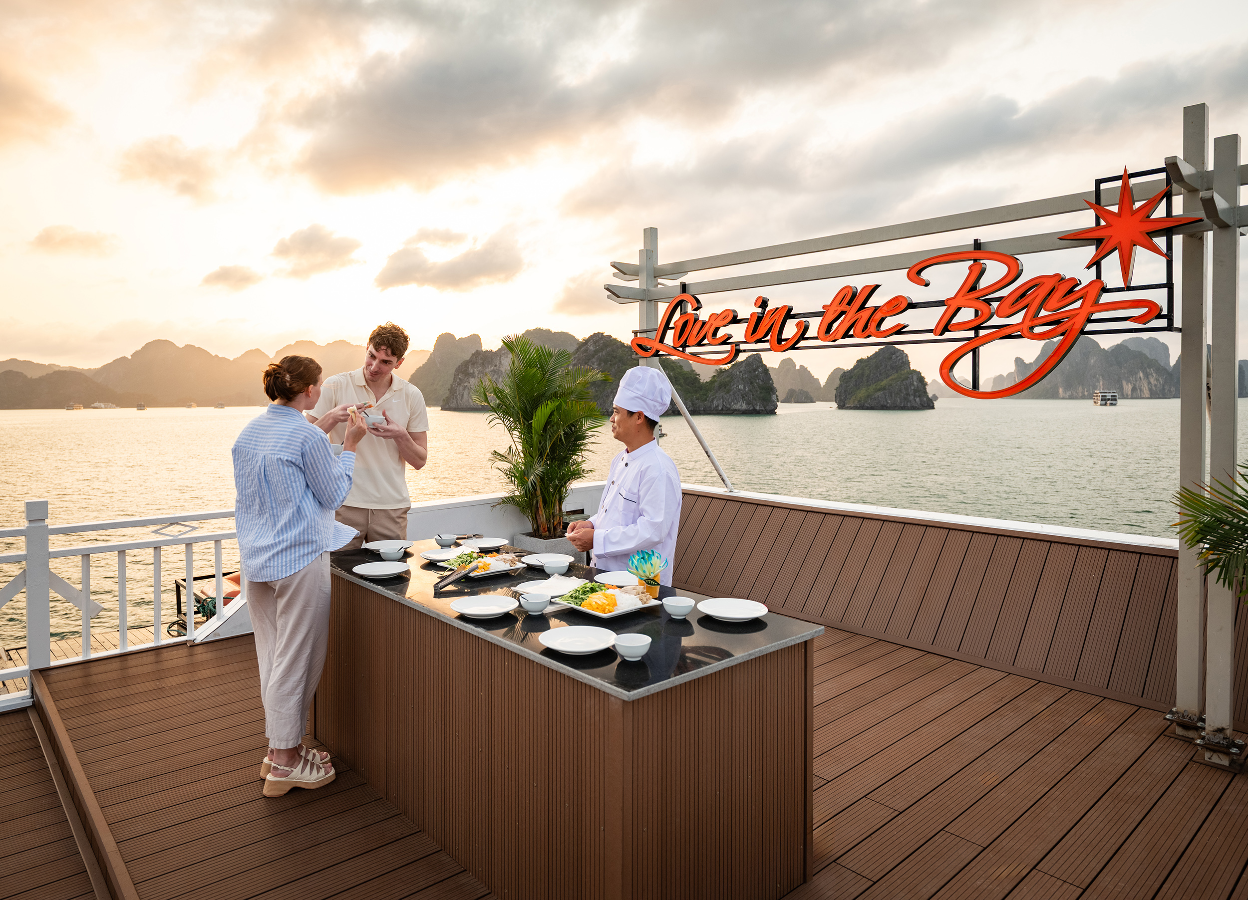 - [Attraction/experience] 18:00, Ha Long Bay, Joining the Sunset Party and Cooking Class