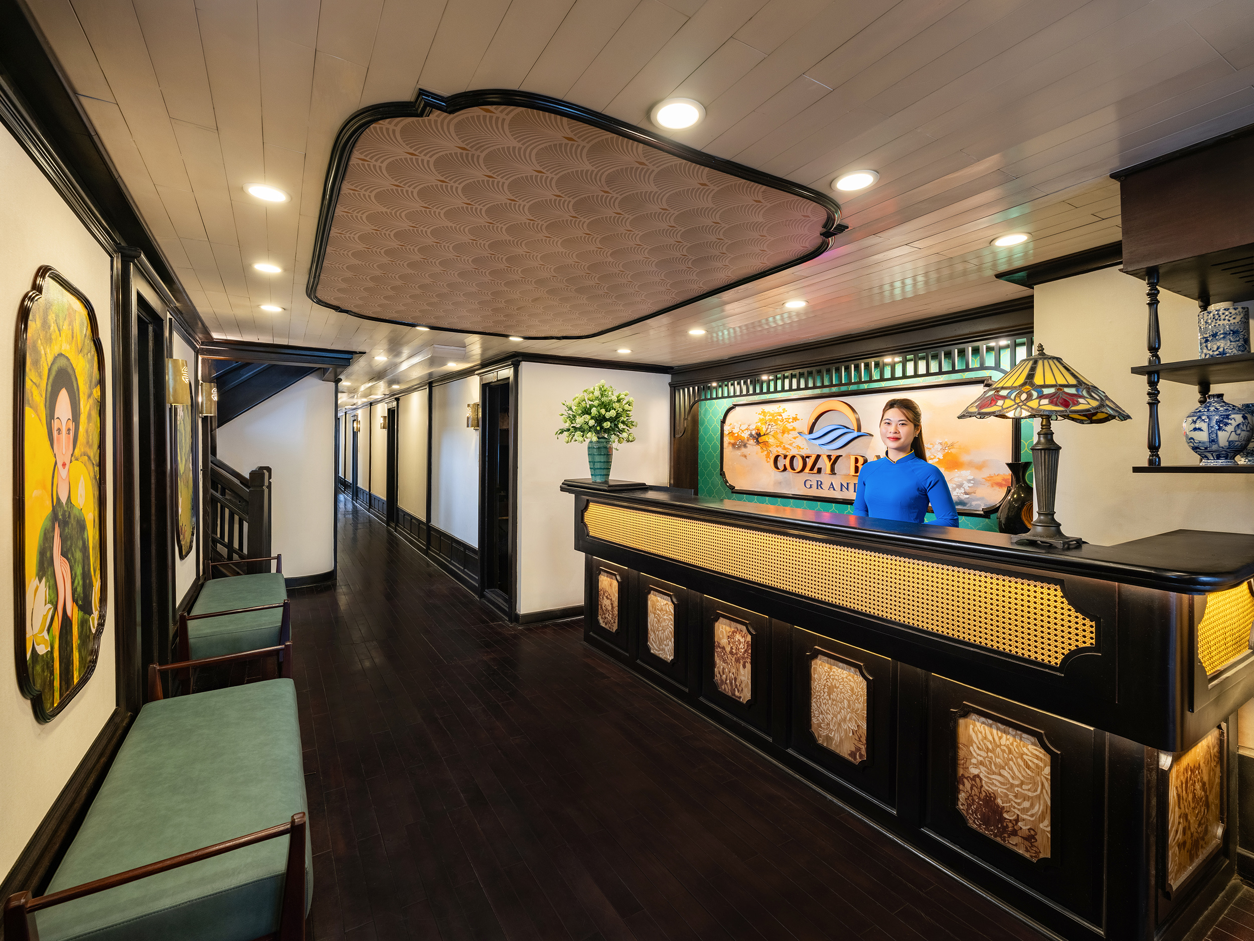 - [Attraction/experience] 12:30, Guided tour, Ha Long Bay, Welcome aboard! Enjoy a refreshing welcome drink, cruise briefing, and cabin check-in.