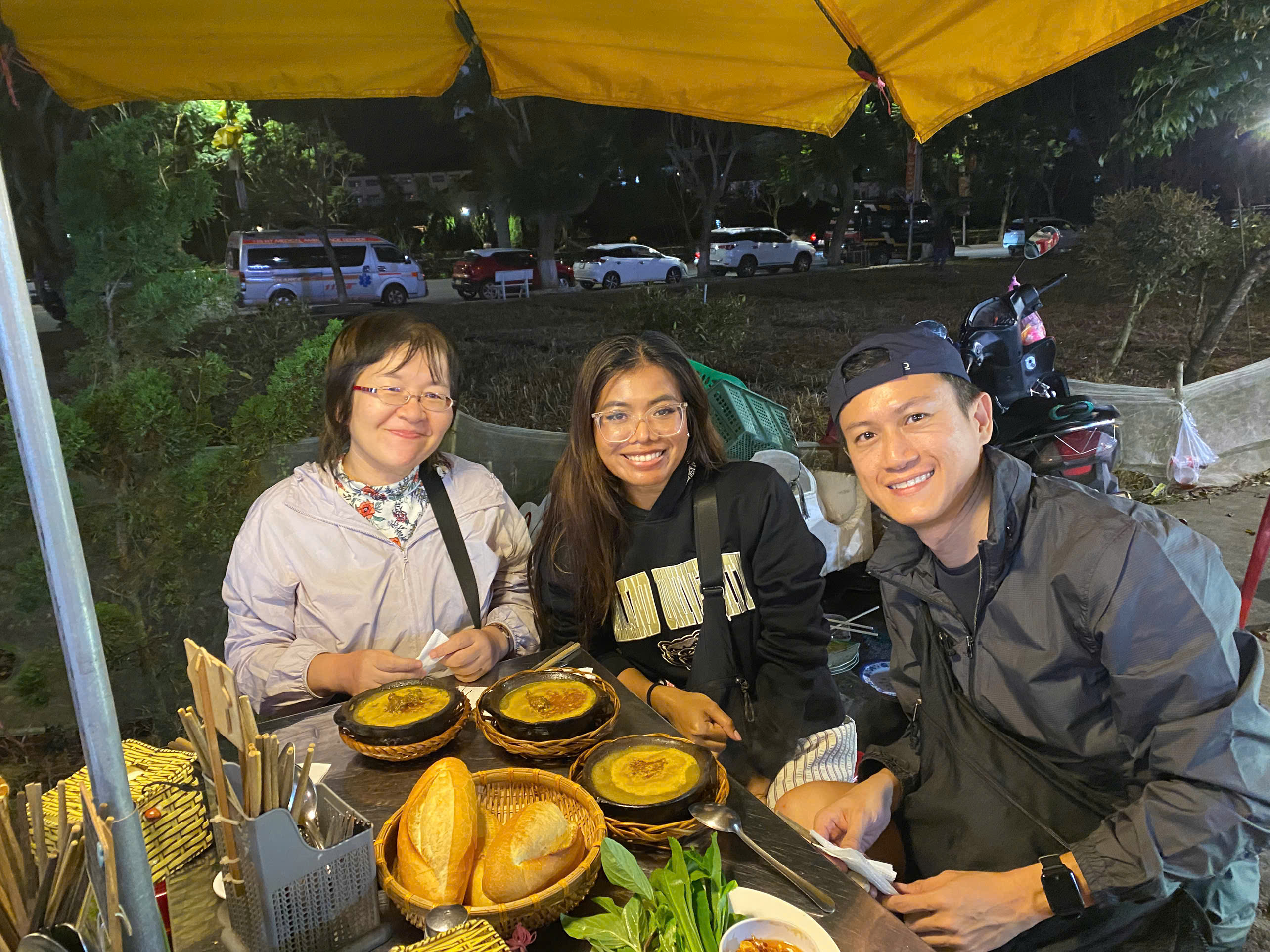 - [Dining] 18:45, Snack, Bánh tráng nướng, Head to the lively night market to sample Vietnamese Pizza Watch as rice paper is grilled over hot coals and topped with egg, green onions, pork floss, and chili sauce etc..
