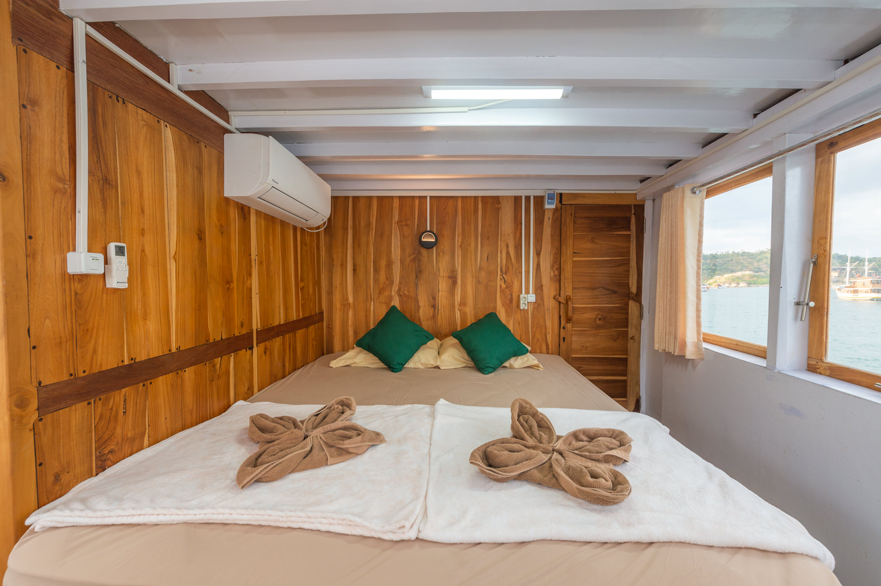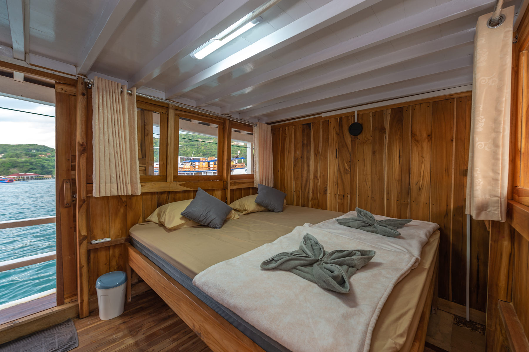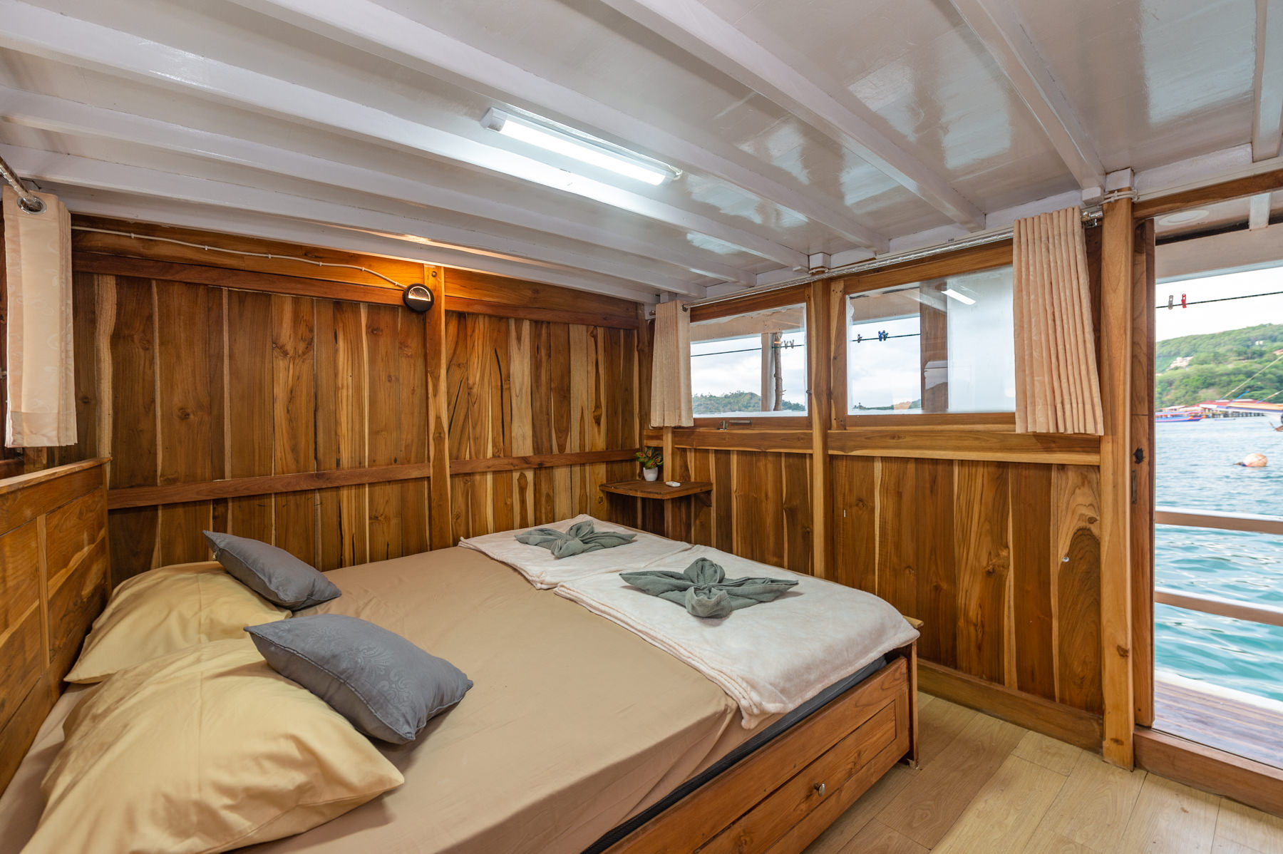 - **Room facilities:** King bed, sea/ocean view, room is located in the upper deck, air conditioner, electricity plugs, private bathroom