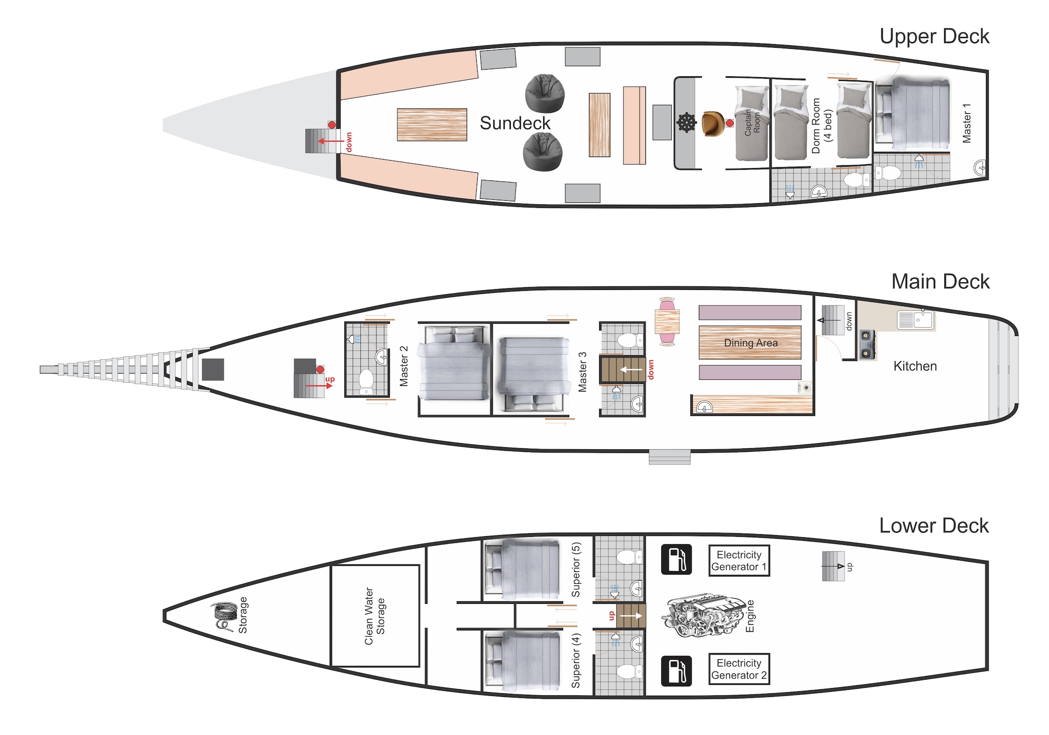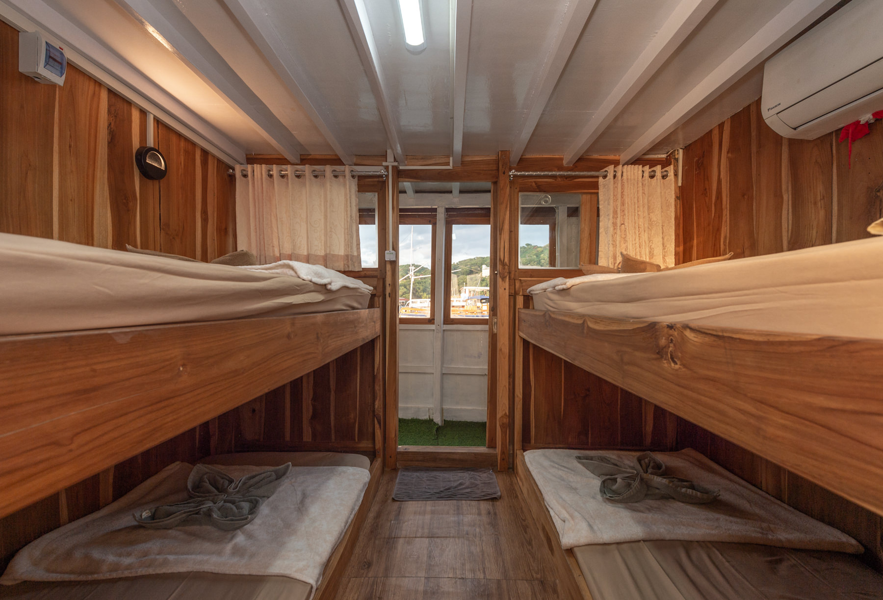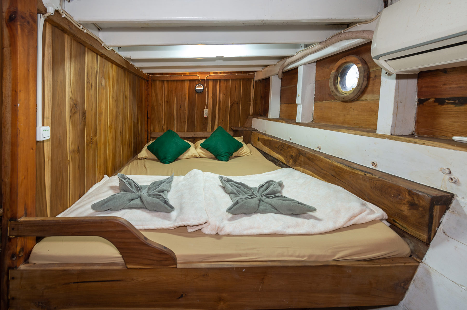 - **Room facilities:** King bed, sea/ocean view, room is located in the upper deck, air conditioner, electricity plugs, private bathroom