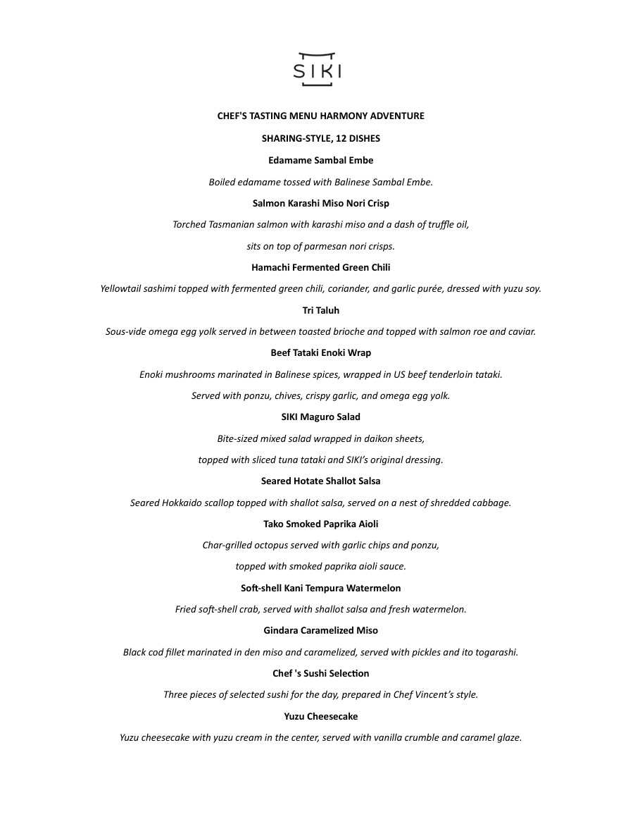 Chef Tasting Set Menu (Harmony Adventure)