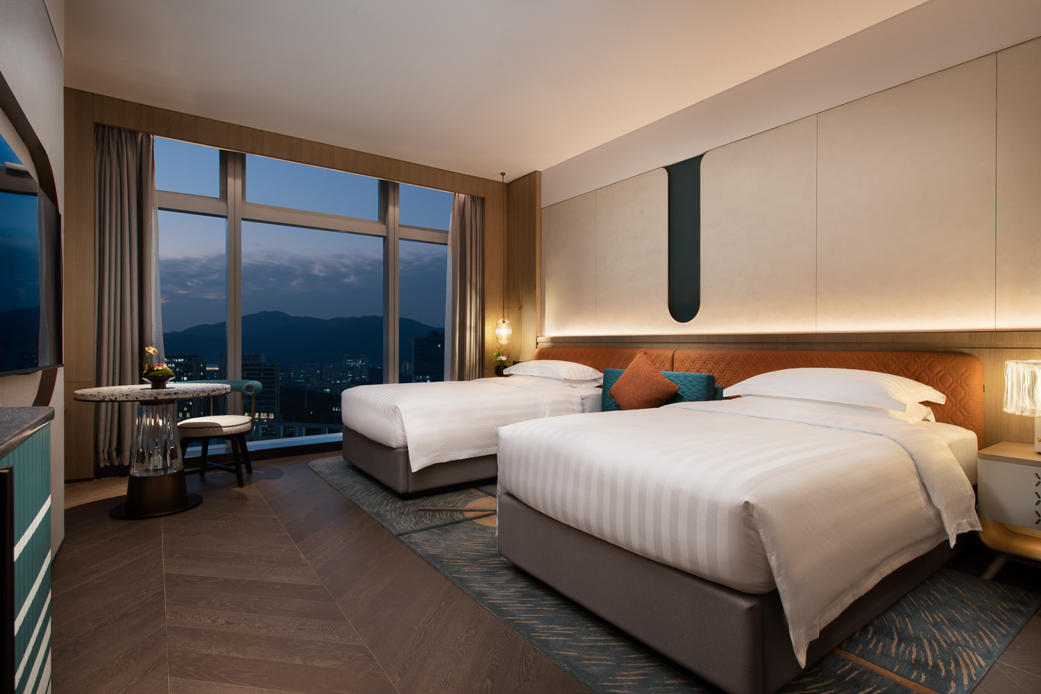 - Deluxe City View Twin Room: 2 1.25-meter single beds | 45㎡ | Floors 7-11 | Floor-to-ceiling windows | Non-smoking | Bathtub