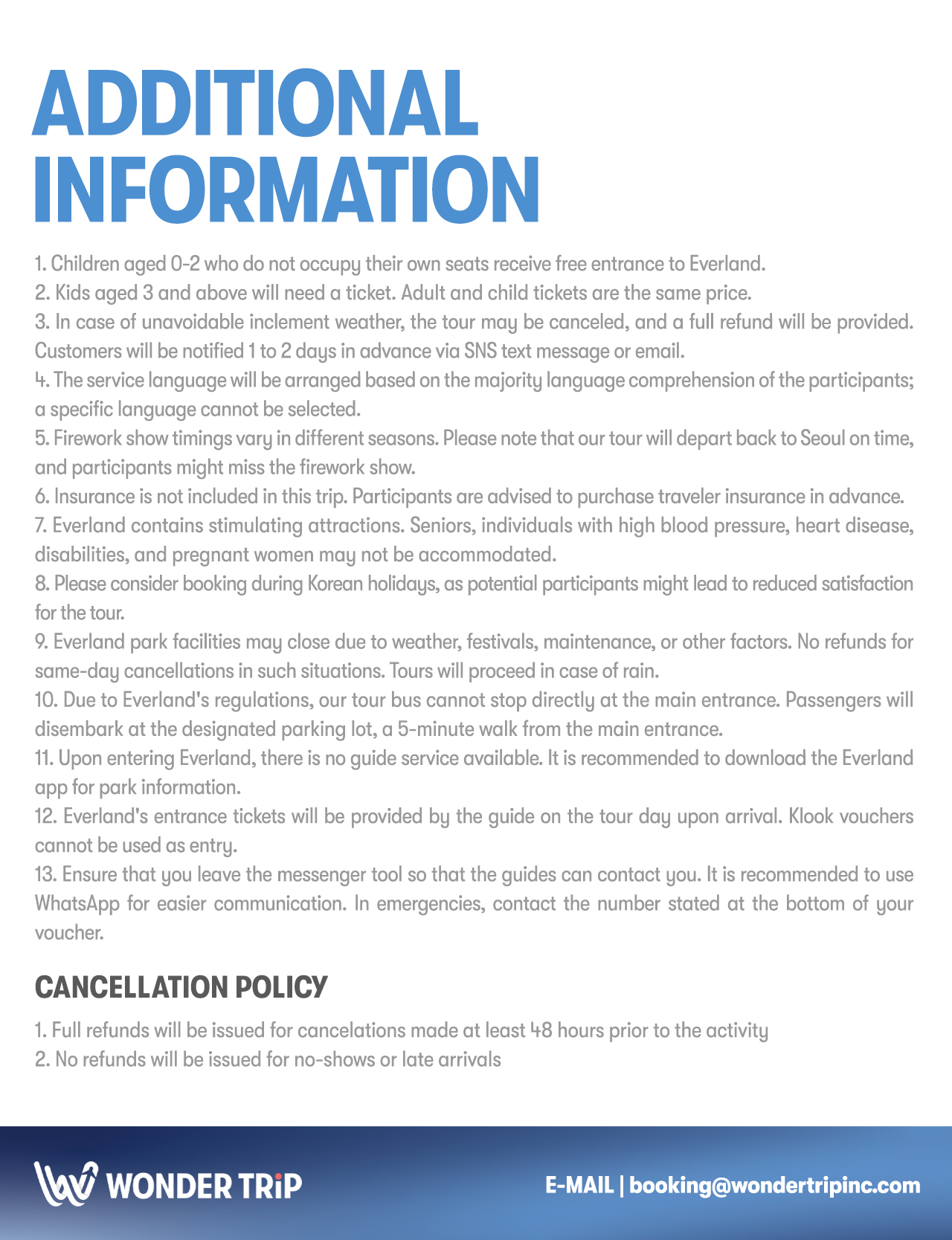 - [Return] 18:00, at Everland, 18:00 Meet with guide at Everland exit gate then get on the bus