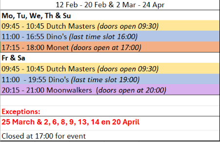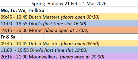 • 24, 25, 26 Dec 2023: Dalí / Gaudí 09:30 - 13:00 & Cosmos 13:30 -18:00