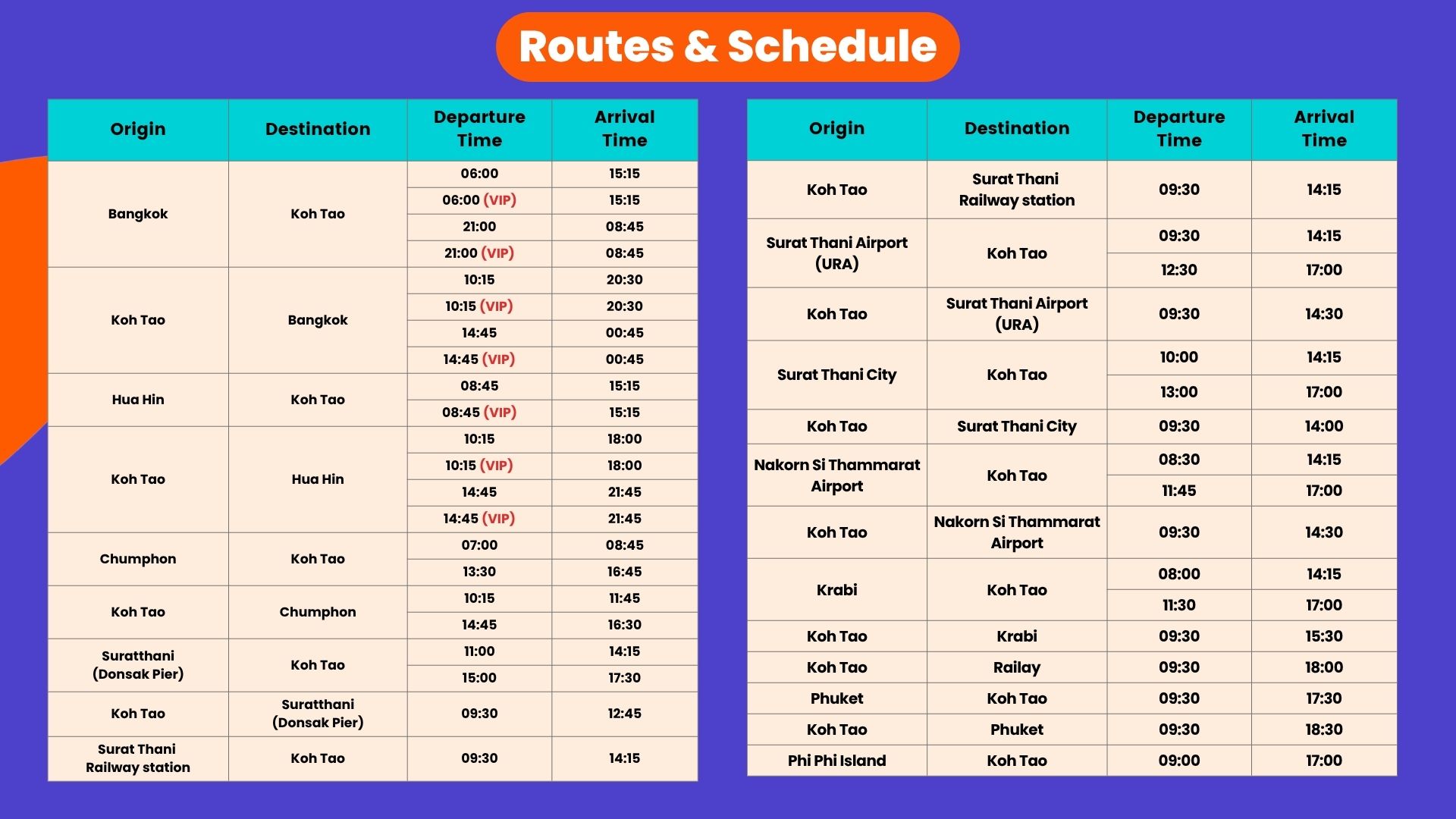 Krabi · Koh Tao · VIP