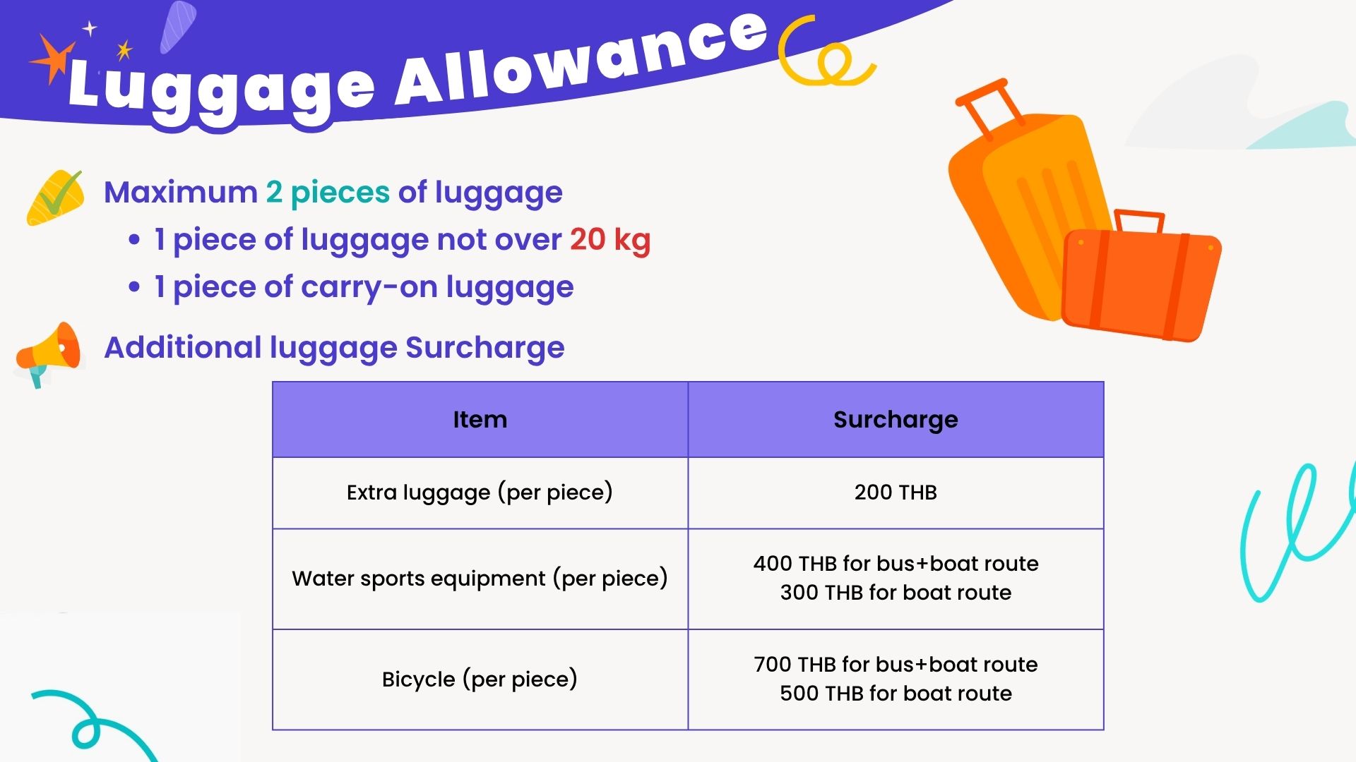 - Luggage allowance