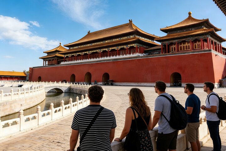 - [Attraction/experience] 3 hour(s), Guided tour, Forbidden City, Meet your guide at Donghuamen. Enter the Forbidden City via the Meridian Gate to visit key buildings along the central axis, as well as some palaces in the side palaces.