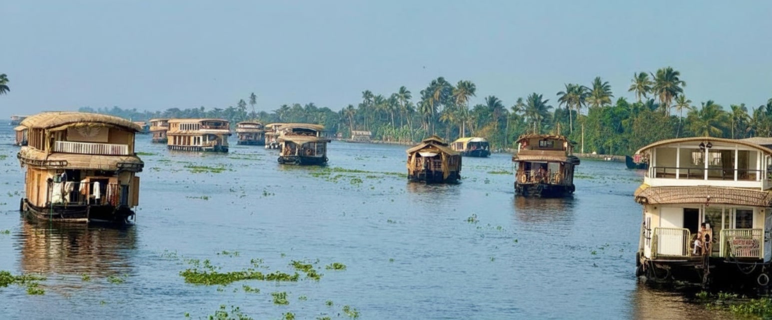 - [Attraction/experience] Alleppey Backwater, Arrive in Alleppey, the “Venice of the East,” and proceed to the houseboat jetty. Check in and board your private houseboat to begin a relaxing backwater cruise.