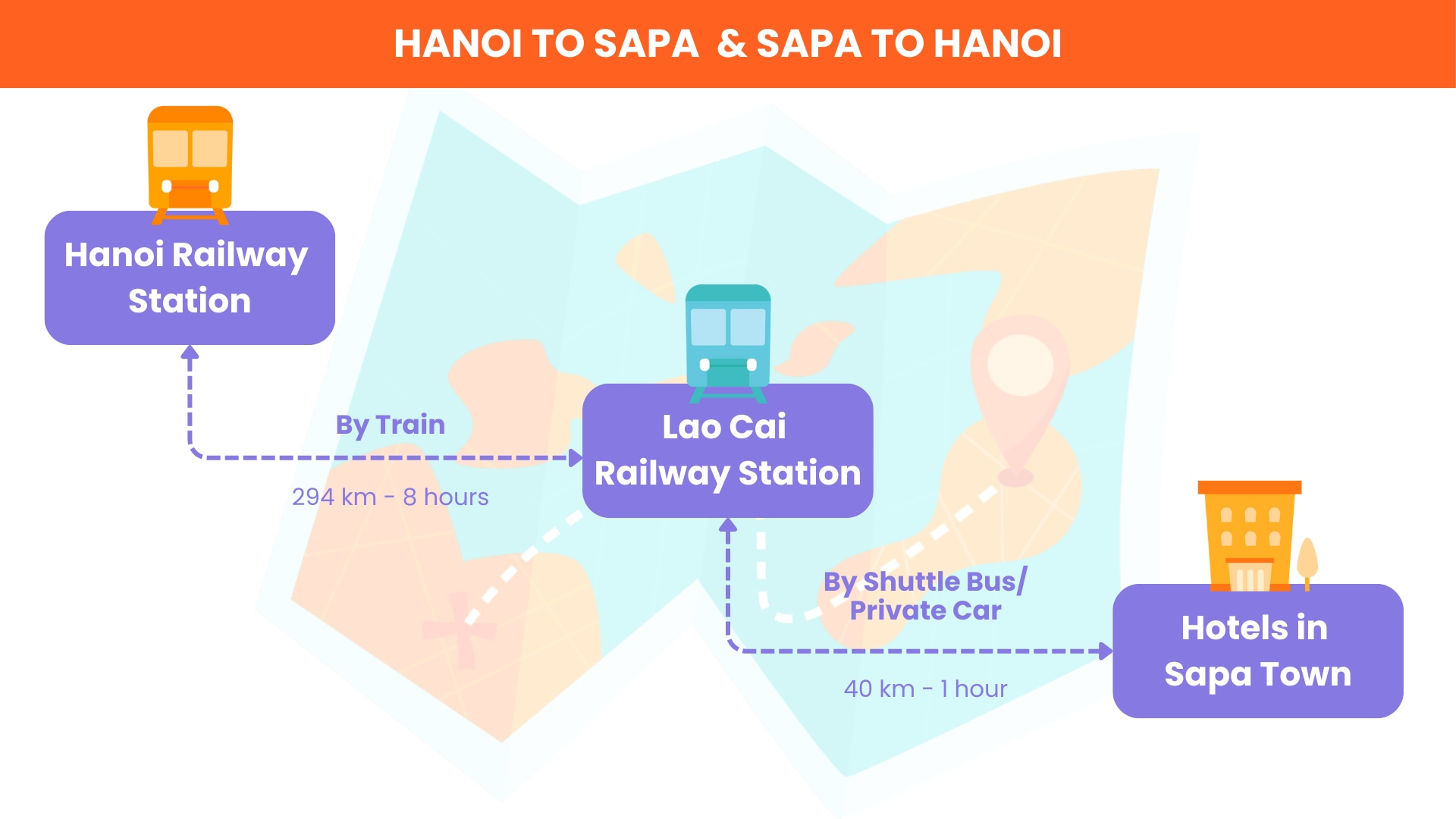 There are some stops & Hanoi station is the last stop. You'll need to take a transfer from Sapa town to Lao Cai railway station, which is about a 50 minutes drive away by private car or 70 minutes by shuttle bus (minivan - ford transit 16 seats).