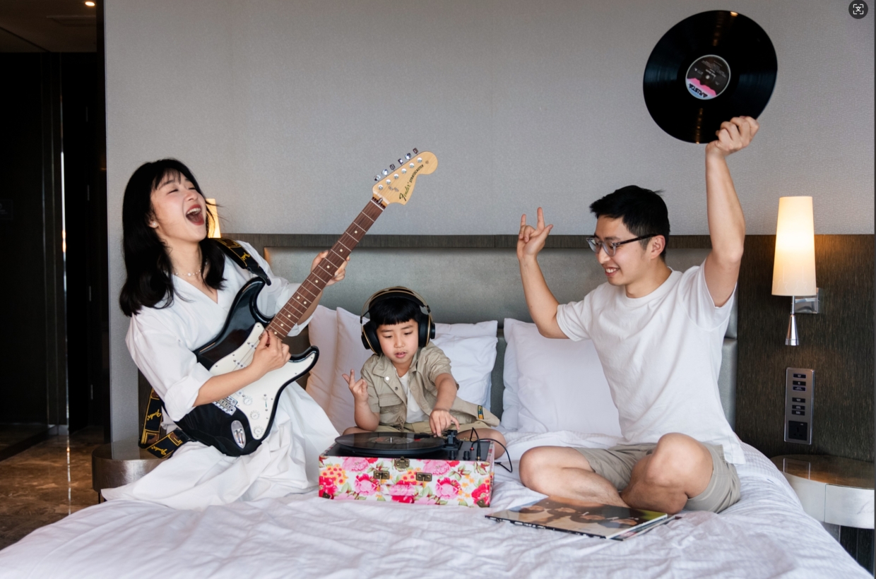- Standard SONY Bluetooth stereo, stereo surround sound delivery to in-room walk-in music experience - Complimentary rental of Fender electric guitar or vinyl record player