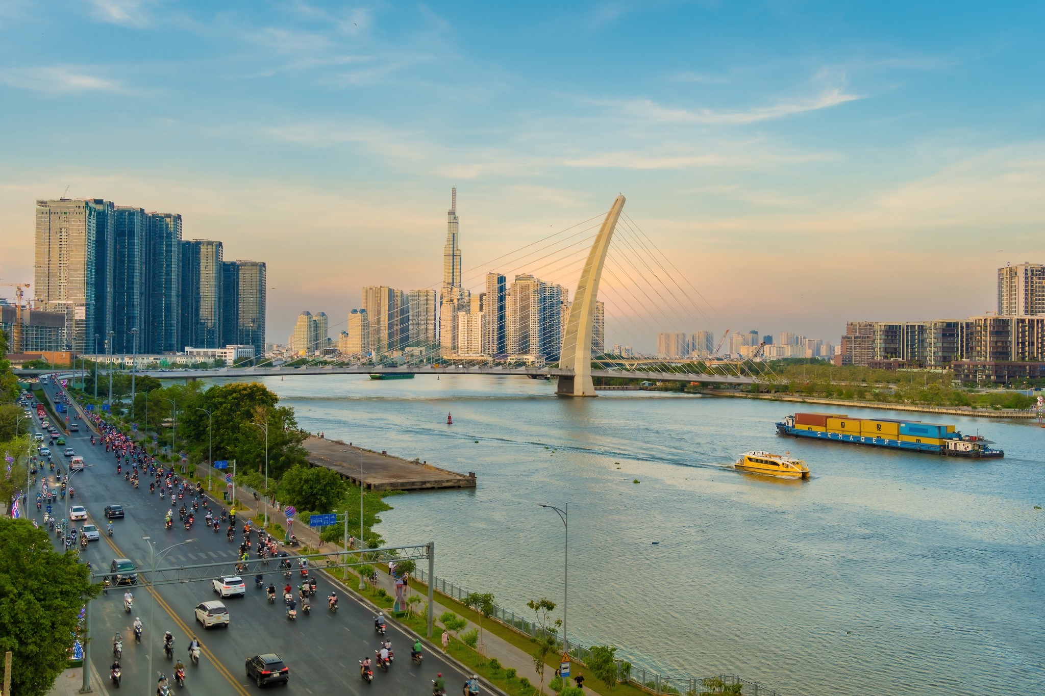 - [Attraction/experience] Guided tour, Saigon Waterbus Station, Arrive at Bach Dang Pier and board the Saigon River water bus for a scenic ride, traveling from District 1 toward District 2 while enjoying views of the city skyline.