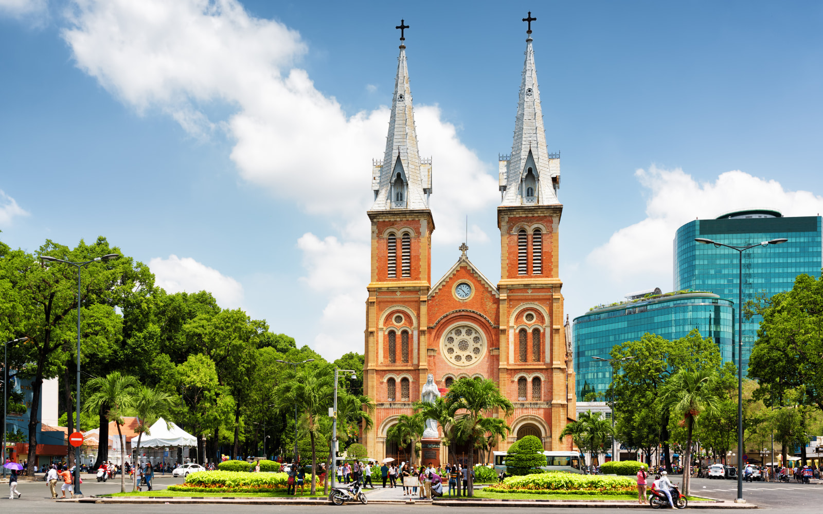 - [Attraction/experience] Guided tour, Notre Dame Square, Saigon Central Post Office, After the Reunification Palace, continue on foot to Notre Dame Square to admire Notre Dame Cathedral and other French-colonial landmarks in the city center..Some attractions might need to skipped because of capacity or weather conditions