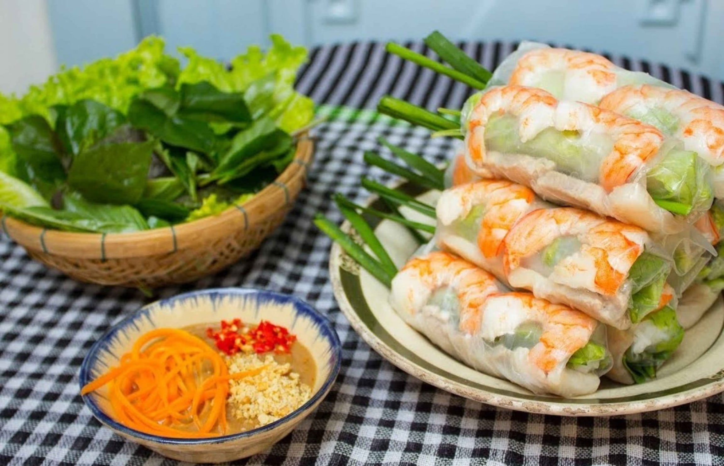 - [Dining] 10 min(s), Goi Cuon - Spring rolls, Spring Roll: fresh rolls with shrimp and peanut sauce. Ingredients: Rice paper, shrimp, pork, green salad.