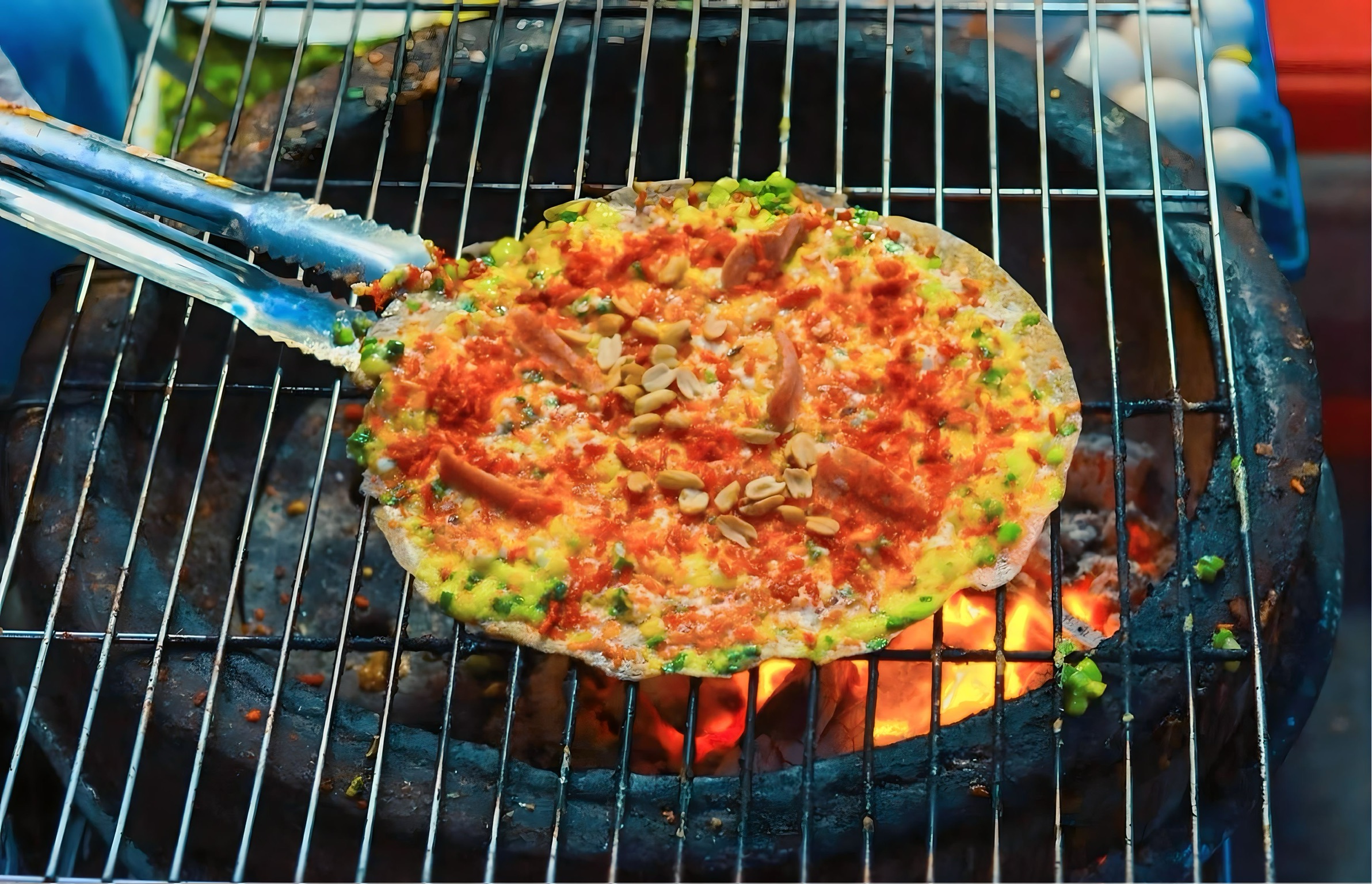 - Chuối Nướng — grilled plantain topped with creamy coconut milk sauce, blending sweet and savory flavors. It’s proudly recognized as one of the world’s top 10 street foods. Ingredients: Ripe bananas, sticky rice, coconut milk, tapioca, toasted sesame seeds.