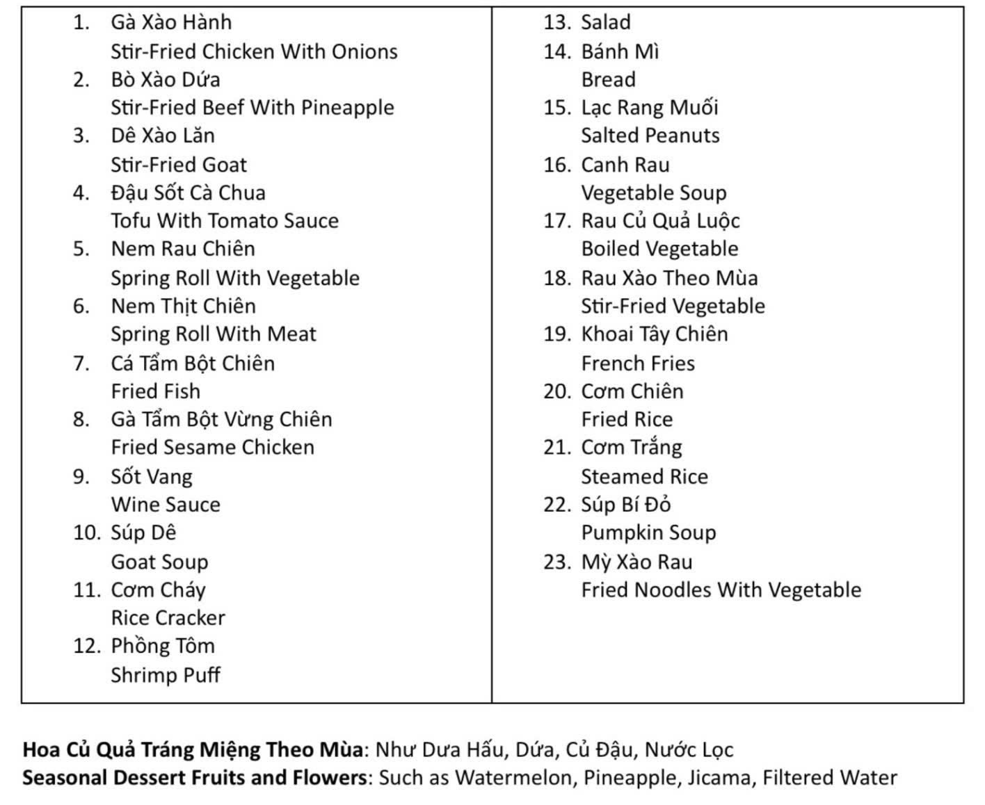 Sample Menu