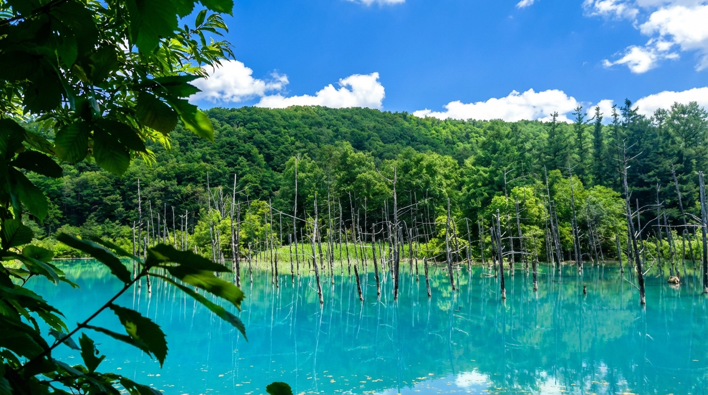 • [Attraction/experience] 13:40, 20 min(s), Shirogane Blue Pond, The pond water displays a unique blue color due to the refraction of minerals and light, and is known as "God's overturned palette." It offers a striking visual impact regardless of whether it is a sunny day or a snowy scene.