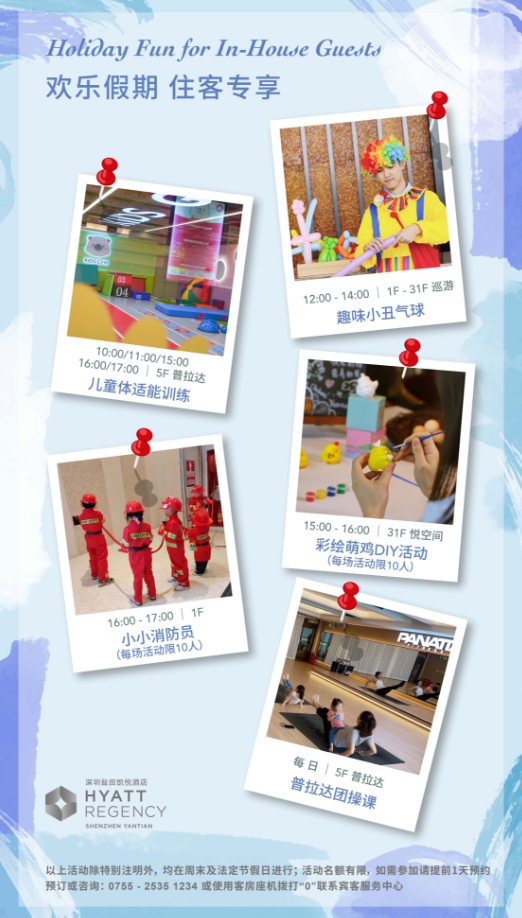- Dinner: (6-11 years old) Child: ¥214/person/serve; (12 years old and above) Adult: ¥428/person/serve (the price is for reference only, subject to on-site charges. If necessary, please purchase at the hotel front desk)